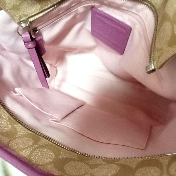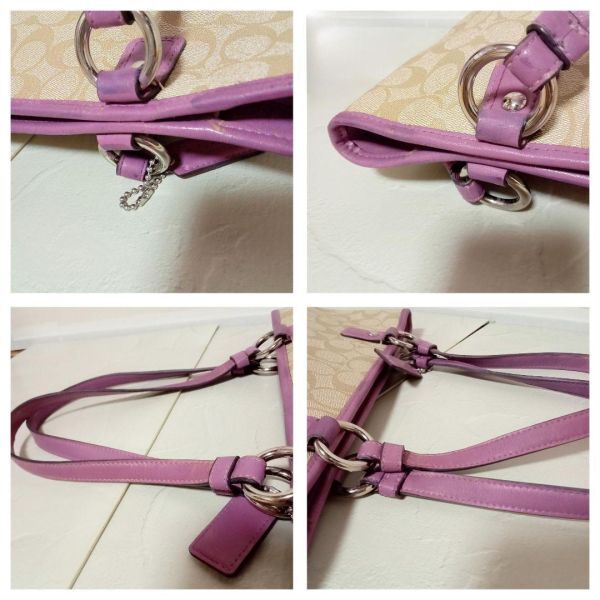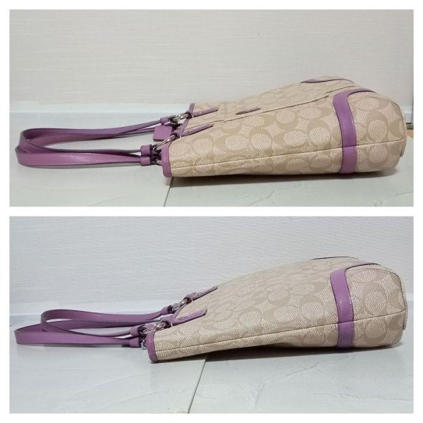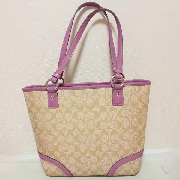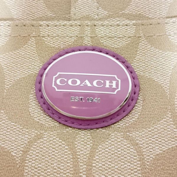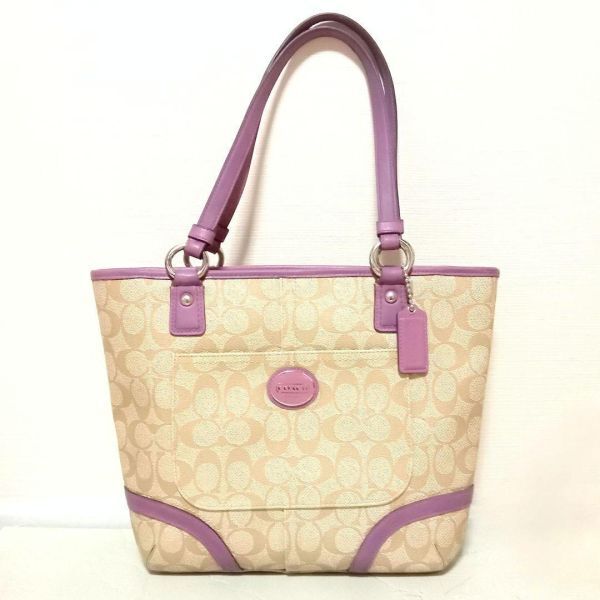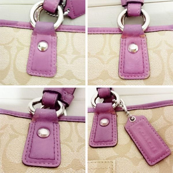正規品保証 COACH PVCトート パープル/ベージュ A4可【匿名配送】