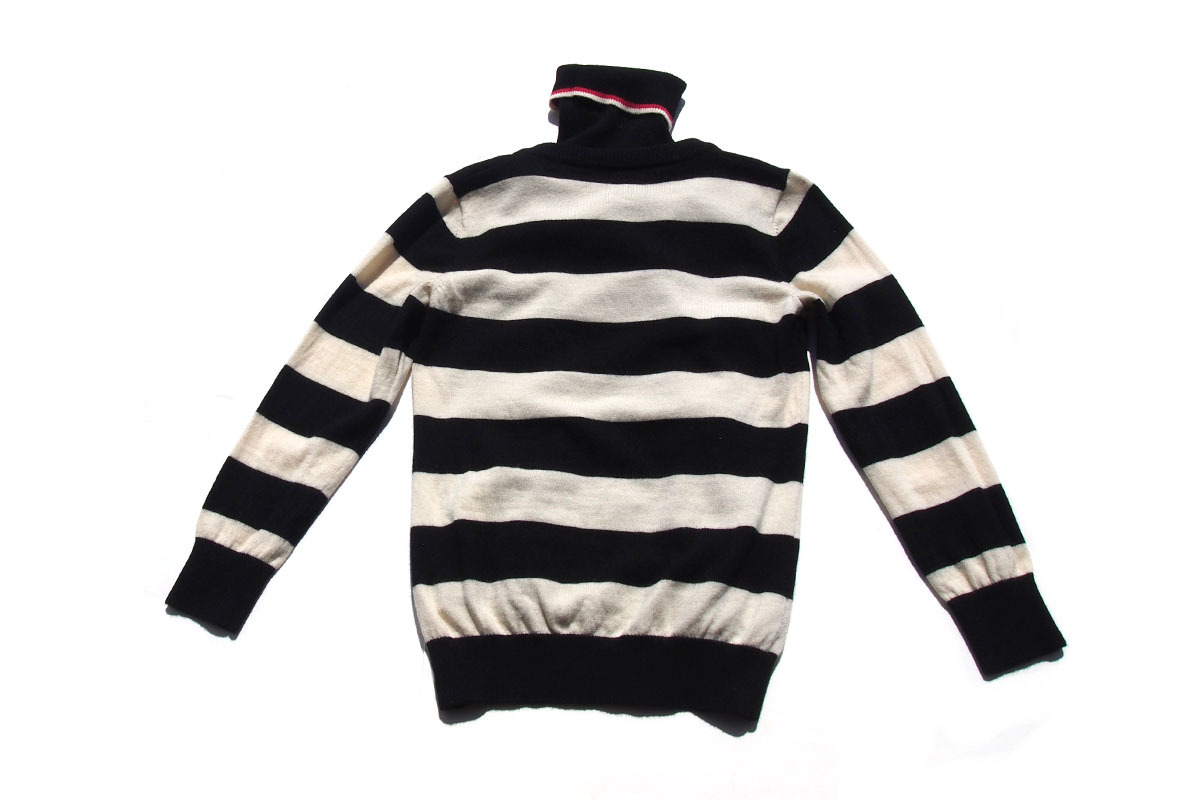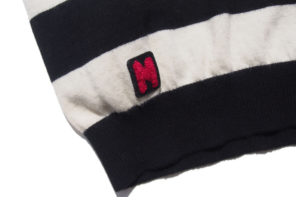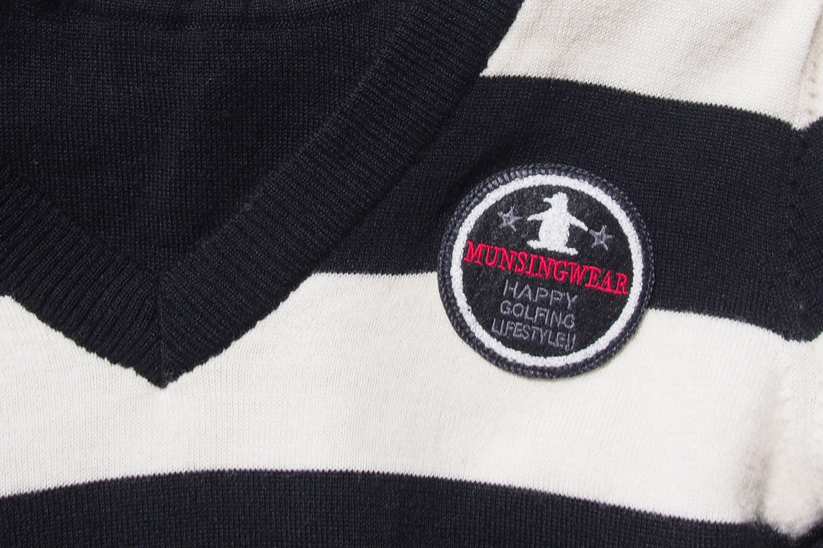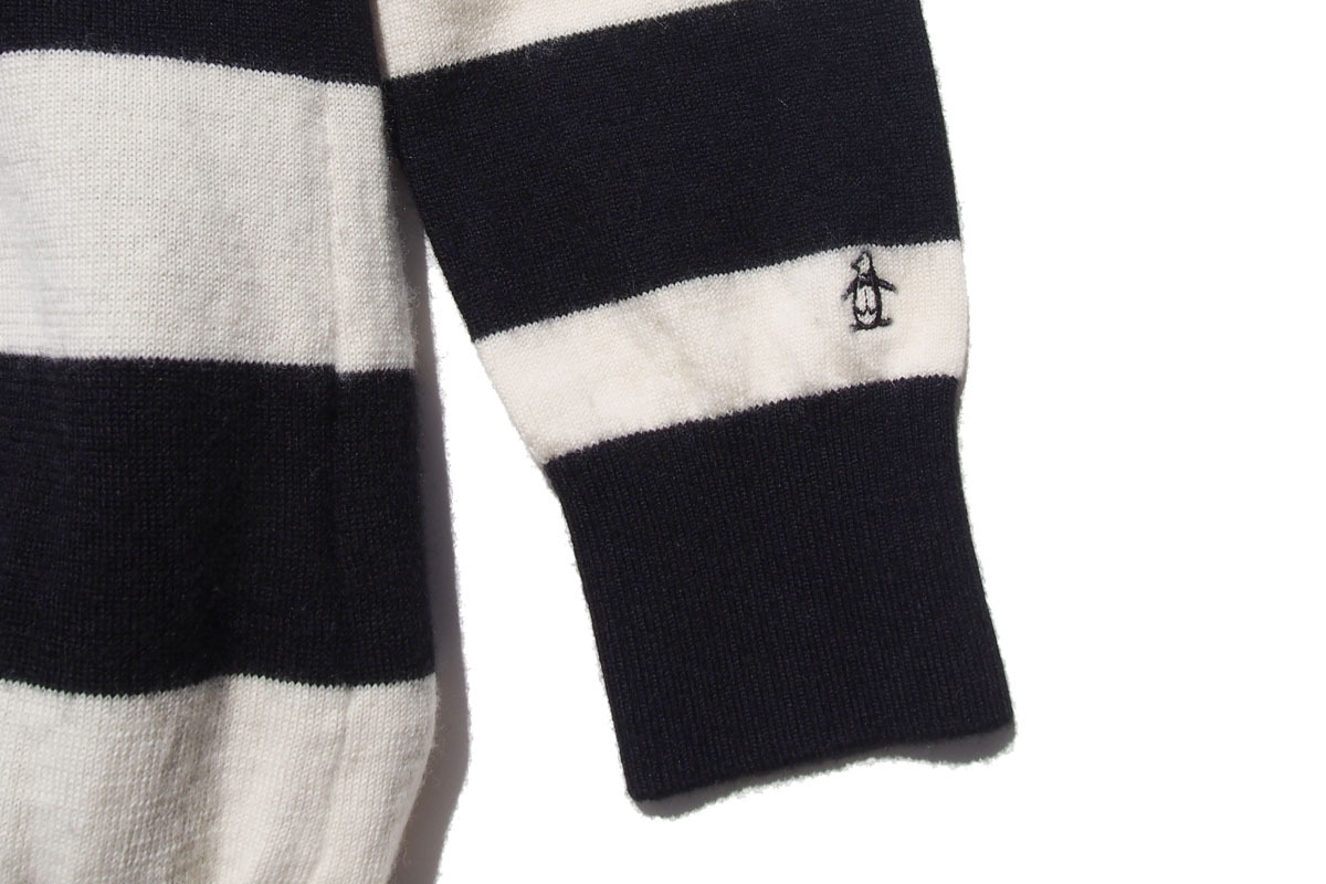 そして、Vネックニットには、クラシックなボーダー柄とペンギンロゴのワッペンをあしらわれ、裾の「M」パッチや袖のロゴ刺繍が遊び心が加えられています。