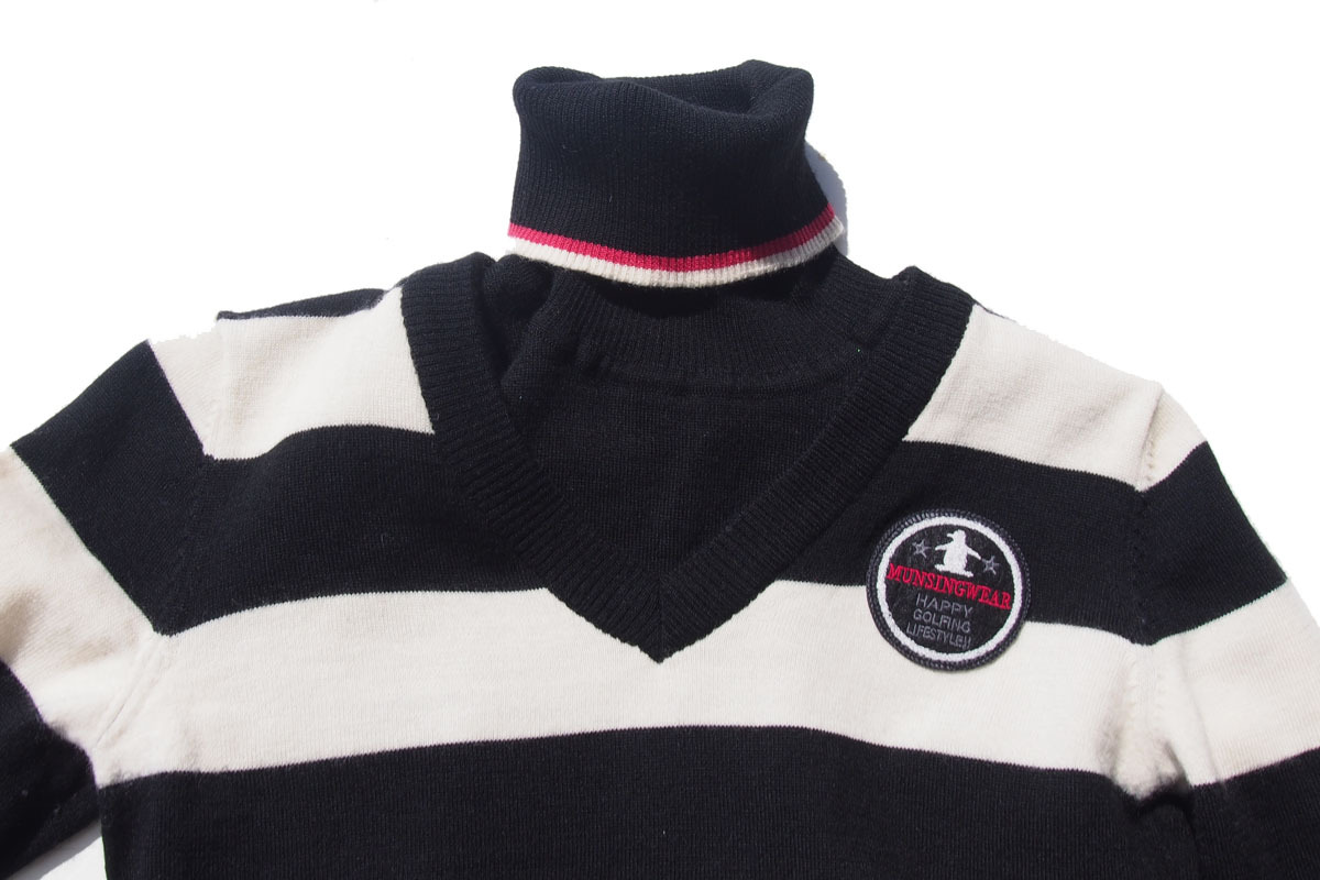 <マンシングウェア>のレイヤードタートルニットは、Vネックニットとタートルネックインナーがセットになった、着回し力抜群のアイテムです。