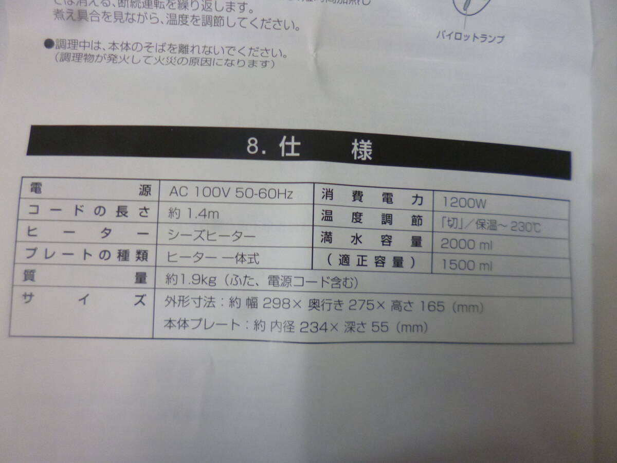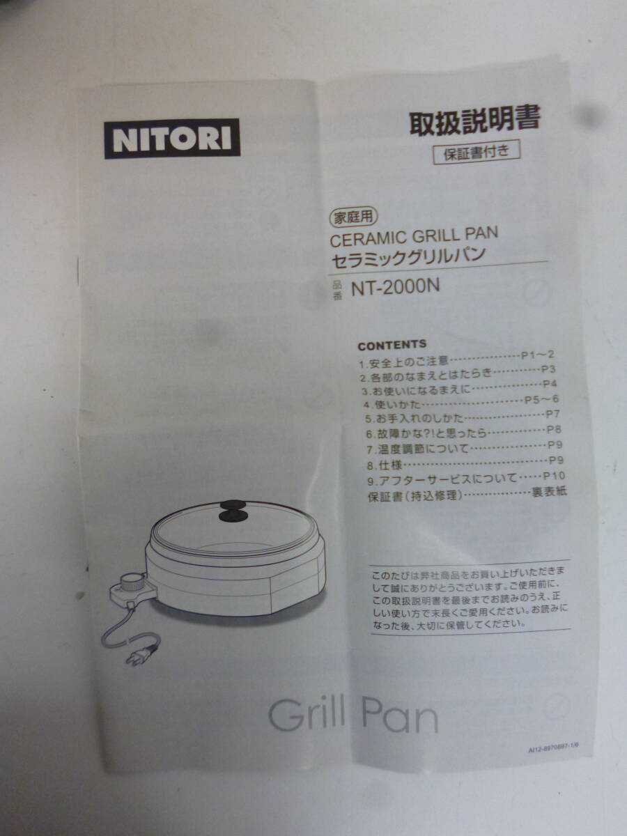 | ★119)セラミックグリルパン・ニトリ NT-2000N 箱なし、説明書あり※中古品/動作OK/使用感現状品■80 *ご覧いただきまして、誠にありがとうございます* ※タイトル■マーク後の数字は梱包サイズです。送料は東京発→ゆうパック基本料金です。料金は下記にあります※ ※いかなる場合も即決、配送業者変更、直接お引渡し、同梱、まとめ発送はお断りしております※ ※全ての機能をチェック行っておりません。また下記の商品状態・画像をご確認いただき、ご納得頂ける方のみご入札をお願い致します※ 【付属品】画像1枚目が全てです。 【サイズ】 【商品状態】倉庫にて長期保管の中古品です。熱くなる動作のみ確認しました。調理等の動作は未確認の為ジャンクと致します。現状お渡しでお願い致します。使用期間は不明です。神経質の方はご遠慮願います できるだけ画像を掲載していますが見落しがある場合がございます。画像にてご判断お願い致します。中古品である事を御理解いただき入札を御願い致します。長期保管品ですので不良等があった場合もノークレーム・ノーリターンでお願いします.また倉庫長期保管品ため不備や故障のタイミングがわかりませんジャンクと致します。 ※いかなる場合も同梱発送の対応はできません※ ※その他、多数出品中です。是非そちらも御利用ください。同梱不可です※ |