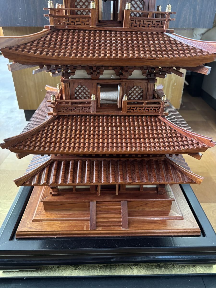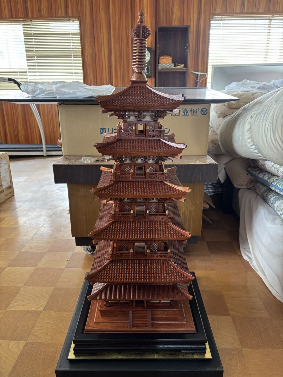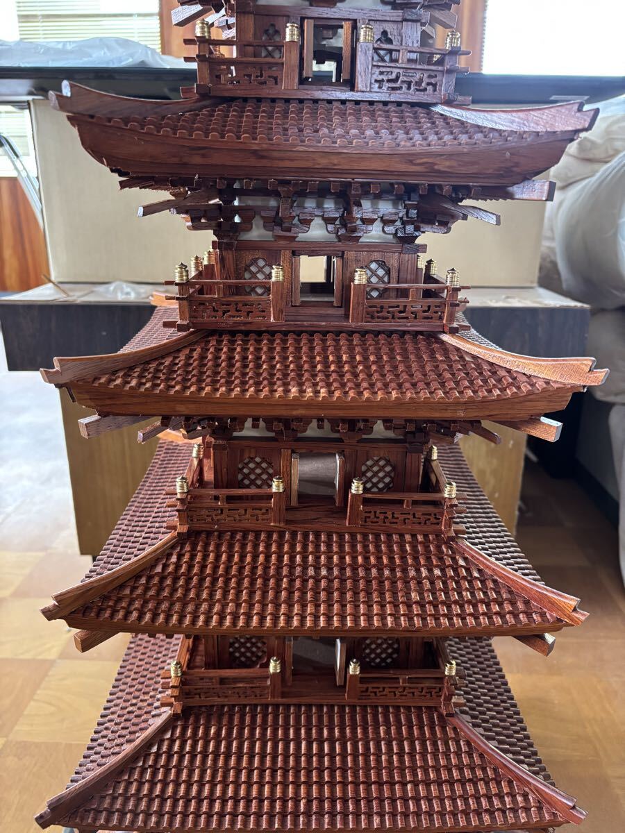【現地引取限定】 五重塔 法隆寺五重塔 木製 高さ約103cm 模型 国宝 精密細工 工芸品 木製建築模型 置物 古美術 五重の塔 台座付き