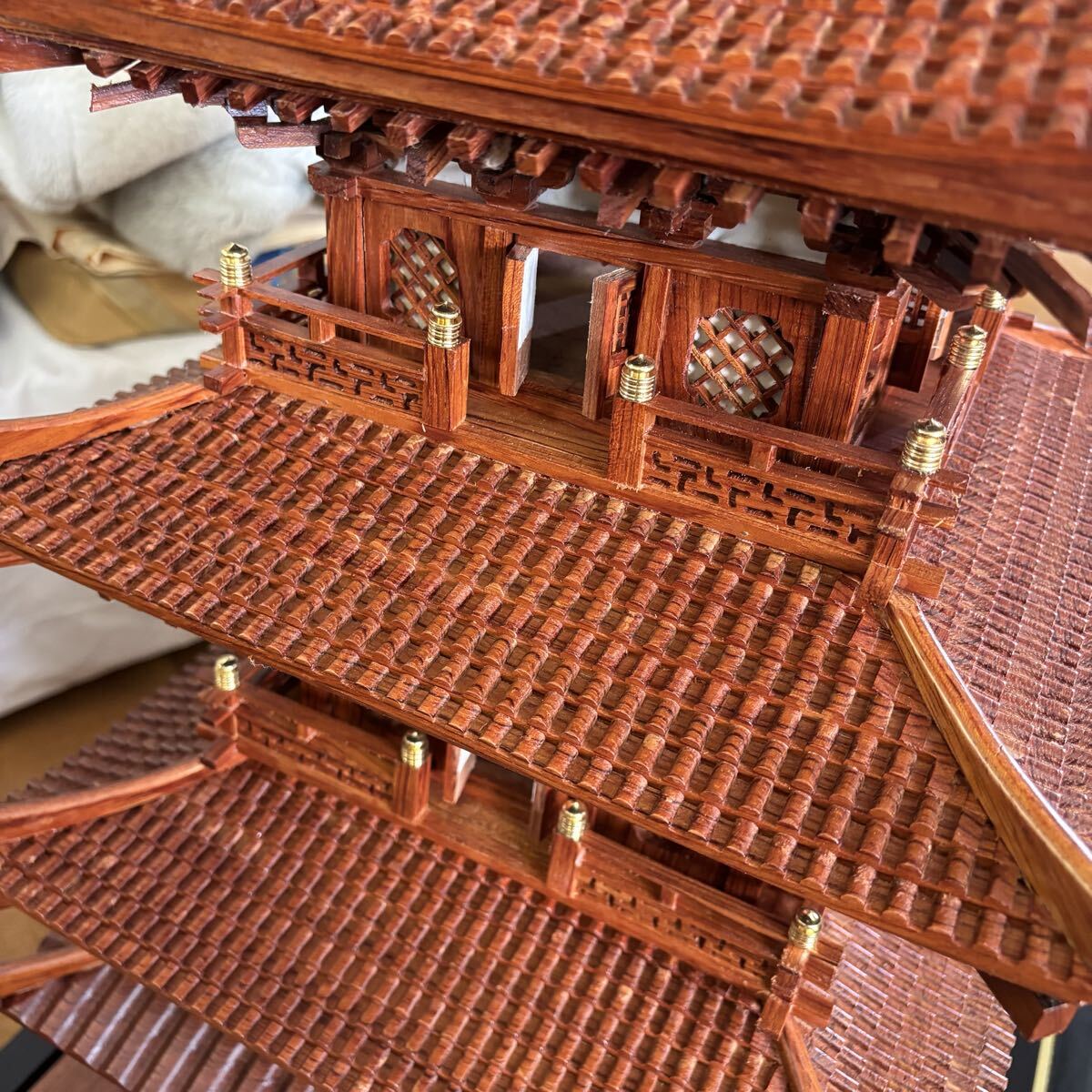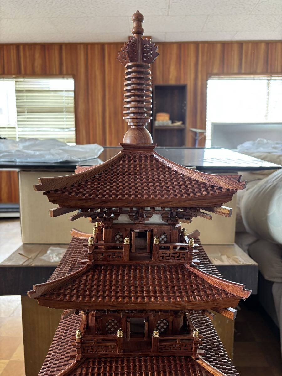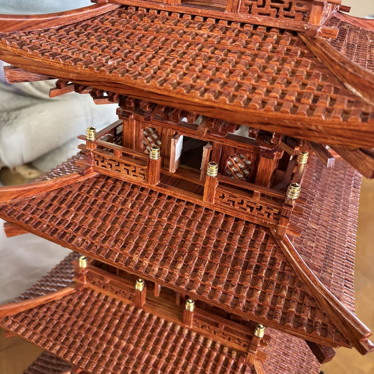 【現地引取限定】 五重塔 法隆寺五重塔 木製 高さ約103cm 模型 国宝 精密細工 工芸品 木製建築模型 置物 古美術 五重の塔 台座付き