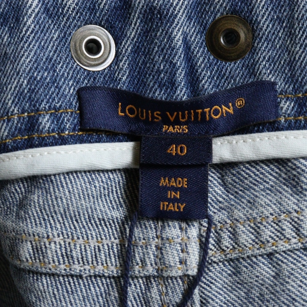 ルイヴィトン 23AW LVカップロゴ ウォッシュ加工 サイド ベルトデザイン デニムパンツ ジーンズ インディゴ RW232WB BEA FPPO37