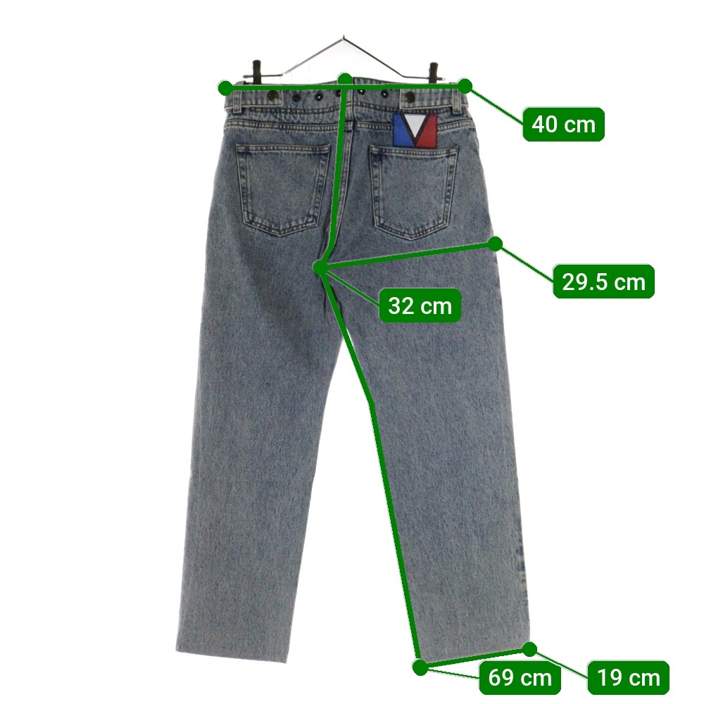 実寸 ウエスト:40センチ ワタリ:29.5センチ 股上:32センチ 股下:69センチ 裾幅:19センチ