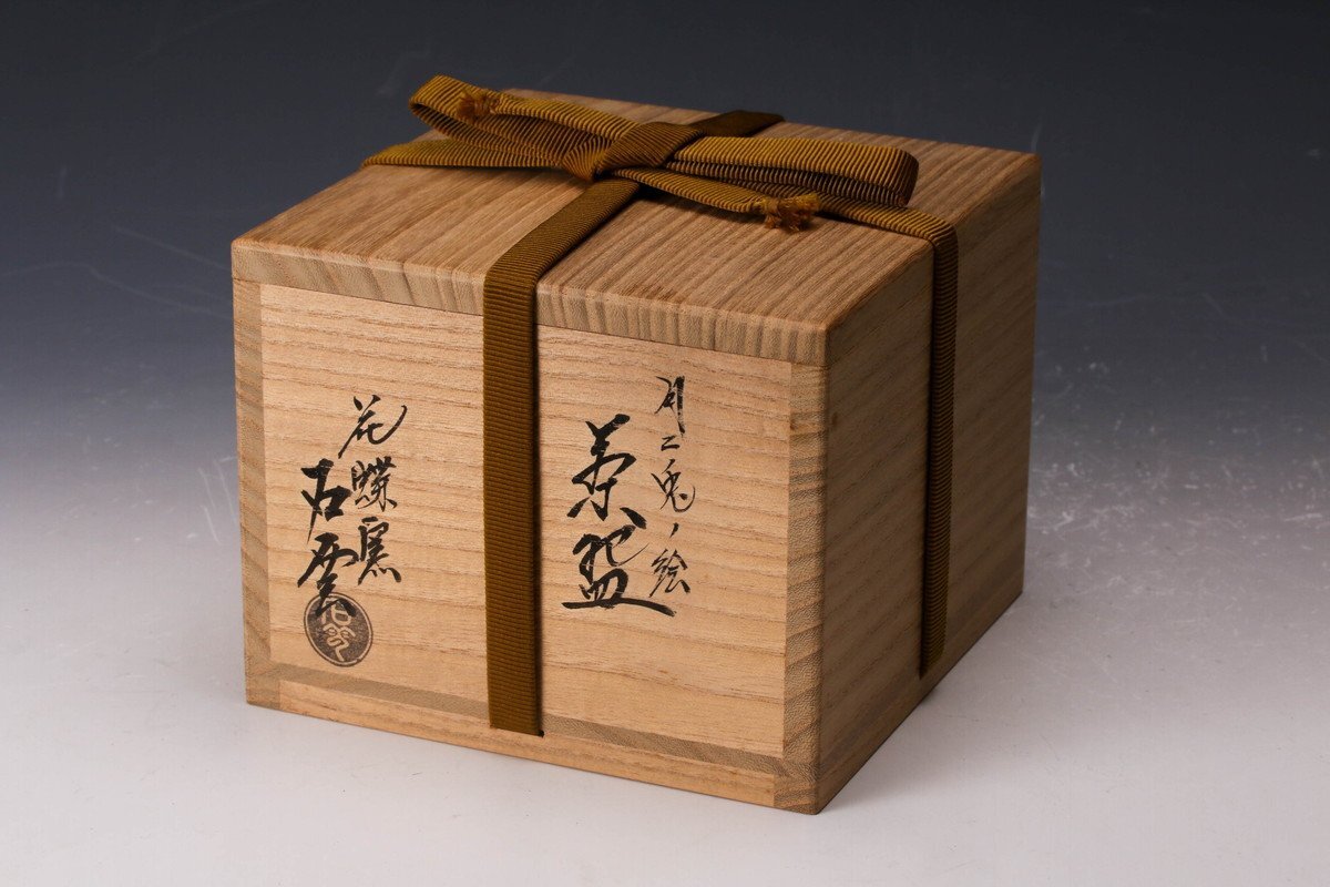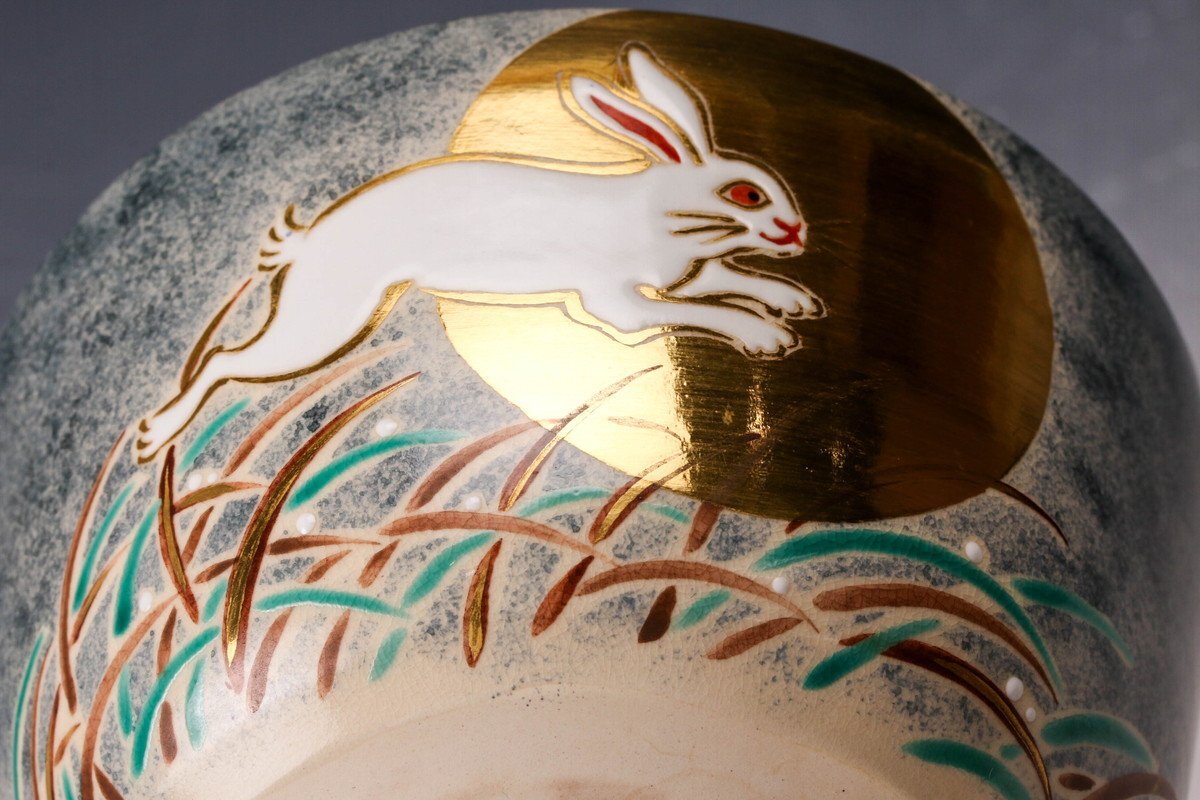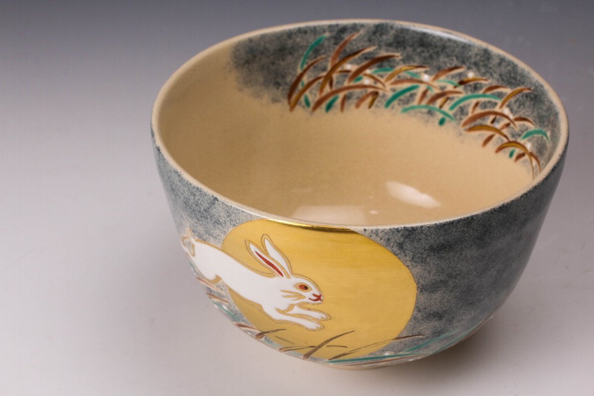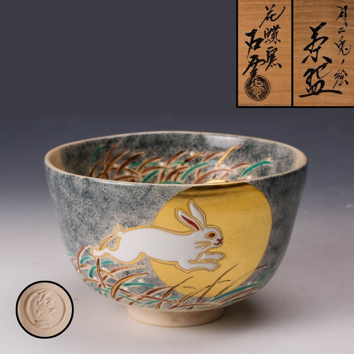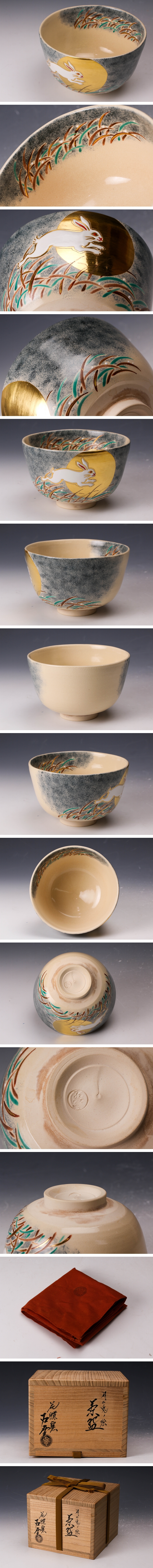 【佳香】手塚石雲 月ニ兎ノ絵茶碗 共箱 共布 茶道具 本物保証