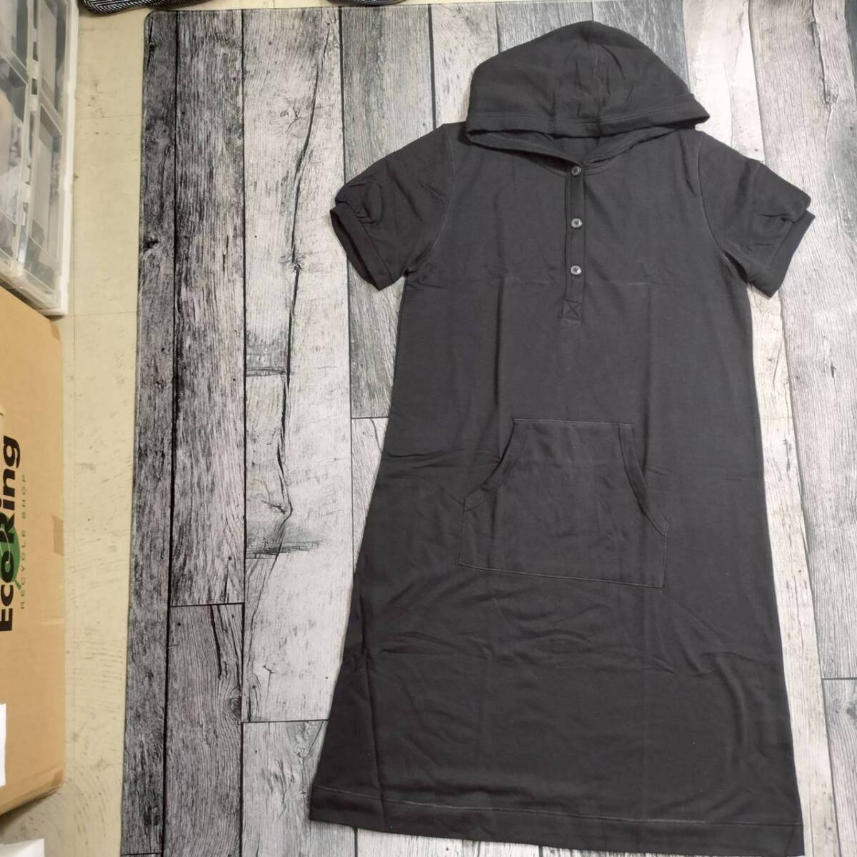 UNIQLO ユニクロ XL スウェット パーカー ワンピース 半袖 フード付き ブラック 黒 レディース ルームウェア