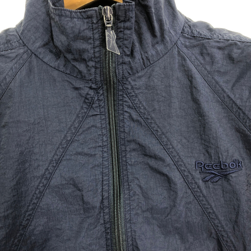 | 【商品管理番号】 S9058 【ブランド】 Reebok/リーボック 【サイズ】 M 【実寸サイズ】 着丈:約63cm 身幅:約60cm 裄丈:約79cm 袖下丈:約48cm 【主な素材】 表地 : ナイロン 【色】 ネイビー 【仕様】 90年代 裾ドローコード トラックジャケット 【状態】 汚れ:腹部 特記事項:色褪せ | |||