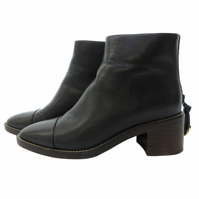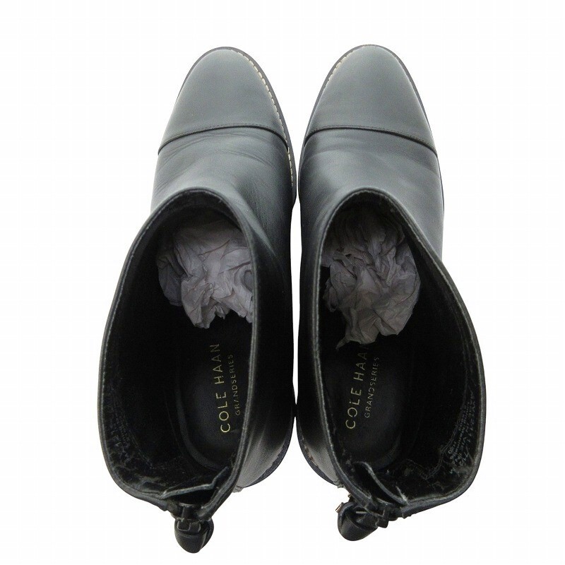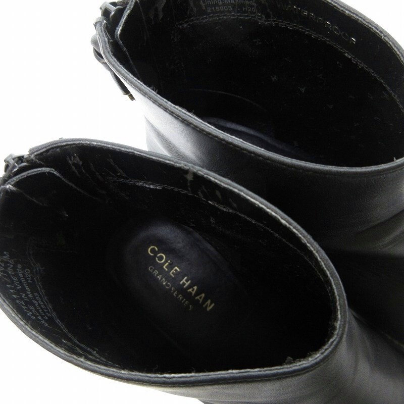 コールハーン COLE HAAN ウィニーグランド ブーティー ショートブーツ ウォータープルーフ レザー ブラック 7.5 約24.5cm IBO69