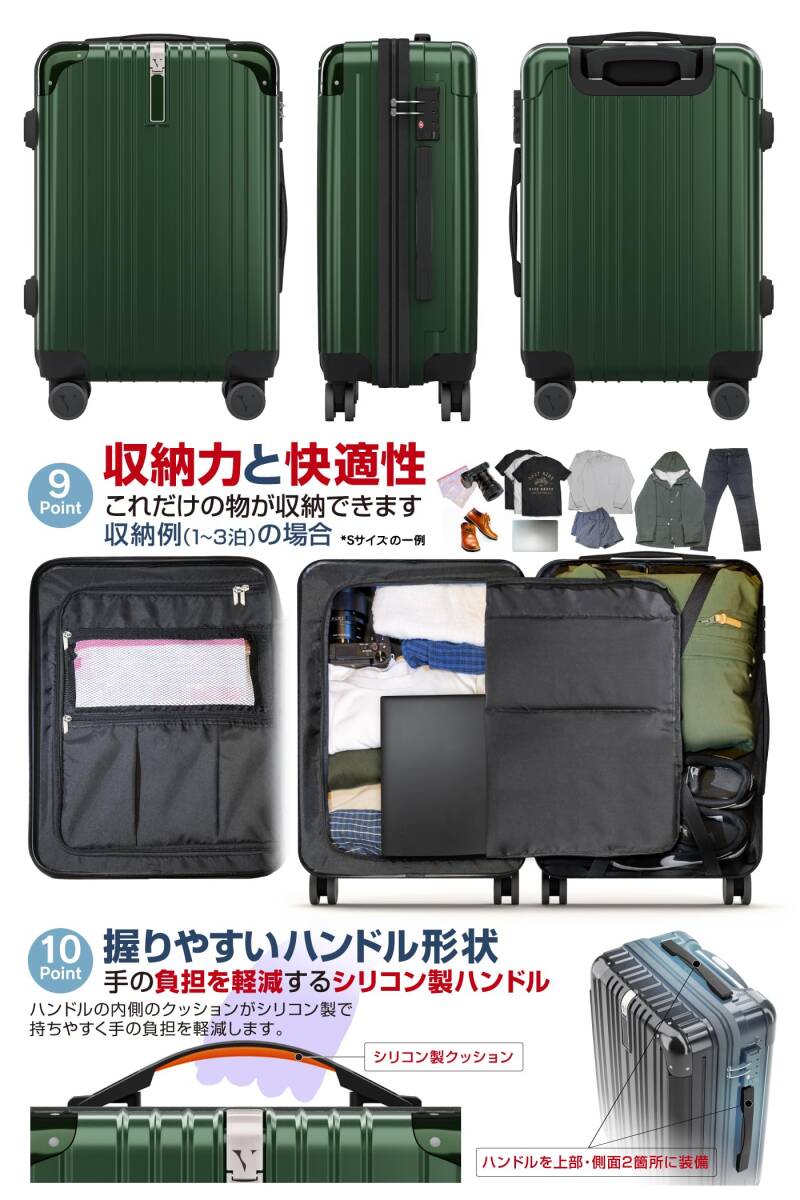 [VELSKYF] 現役客室乗務員監修 スーツケース キャリーケース キャリーバッグ 機内持ち込み TSAダイヤルロック[日本企業企画]一部パーツ無期限メーカー ダブルキャスター (Sサイズ 1-3泊 2.8kg 37L ダークグリーン 深緑)