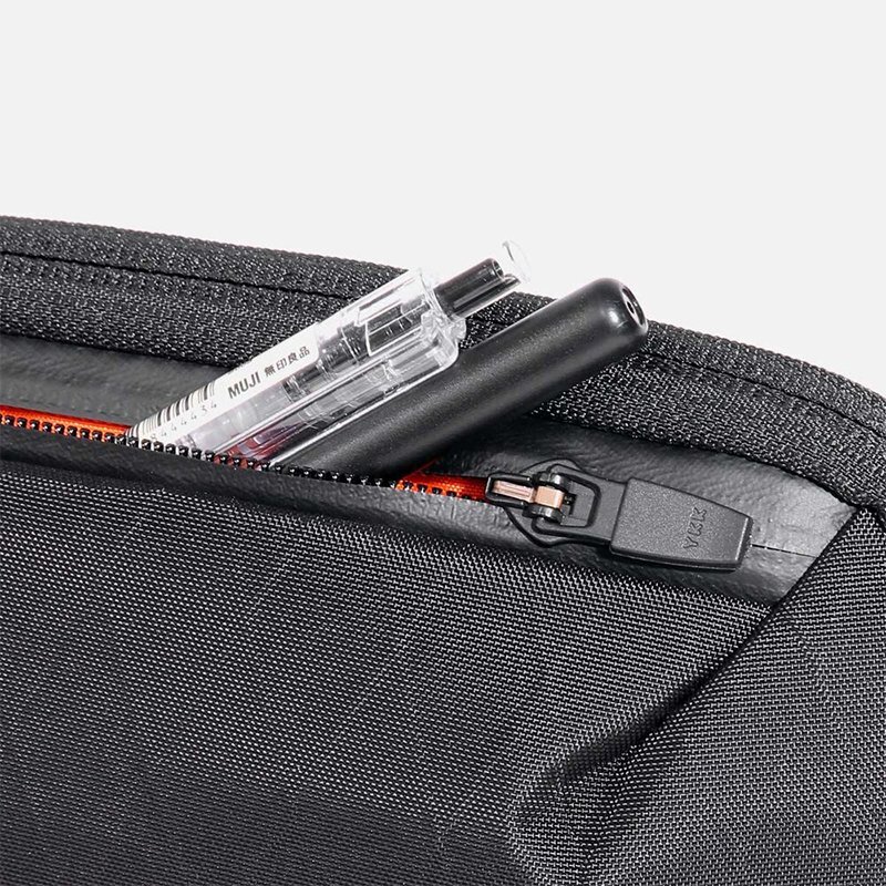 バッグインバッグとして使えるスリムなサイズ感。Aerのバッグと同じ撥水性に優れた素材でつくられている為、旅先での水周りでも大活躍。