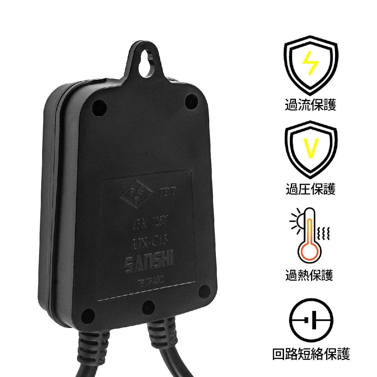 [回路保護機能搭載】寿命に影響する電解コンデンサに信頼性の高い製品を採用。過電圧保護、過熱保護、過電流保護、ショート保護など搭載。3つの運転モード】常時通電、光センサー、光+タイマーの3つのモードで通電を自在にコントロール。
