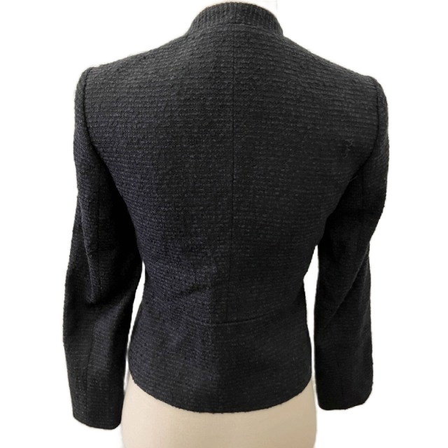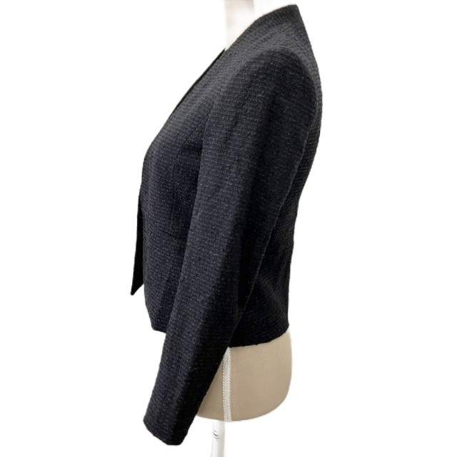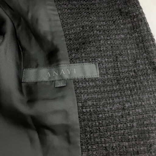 アナイ ANAYI 美品 ツイードジャケット ウール混 ショート丈 36 約S 黒 灰 ブラック グレー 系 ■YHS2 0907 レディース