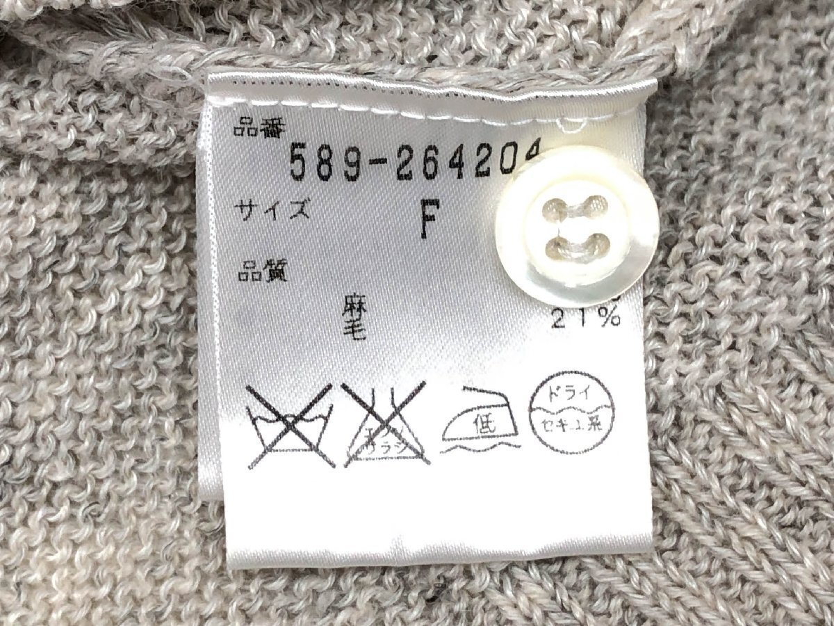 美品【MARGARET HOWELL マーガレットハウエル】589-264204 リネン×ウール ニットカーディガン (レディース) sizeF グレージュ◇35LN5976◇