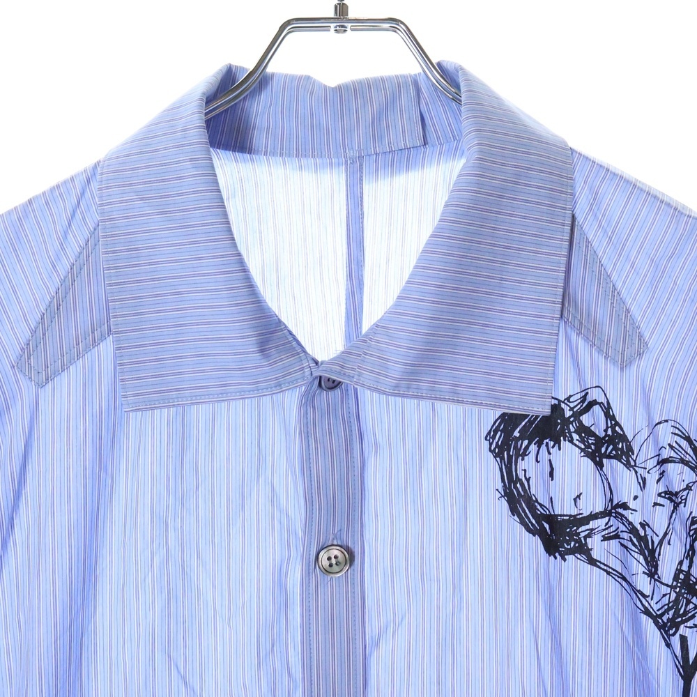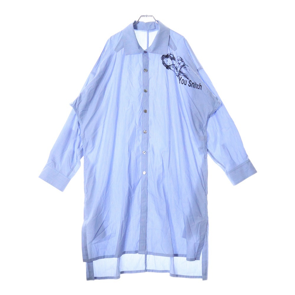 Yohji Yamamoto ヨウジヤマモト 17AW You Snitch L/S STRIPE SHIRT プリント ストライプ 長袖ロングシャツ ブルー HK-B31-021