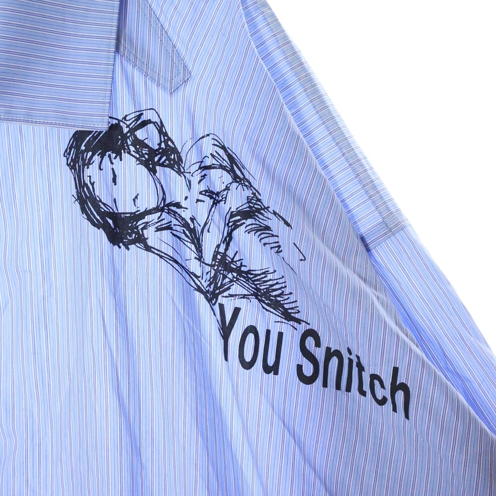 品名17AW You Snitch L/S STRIPE SHIRT プリント ストライプ 長袖ロングシャツ ブルー HK-B31-021