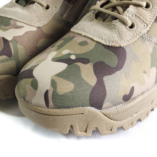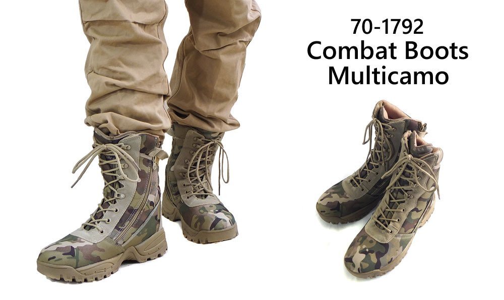 マルチカム柄のサイドジッパーブーツです。サイドジッパー仕様なので、脱履きが容易です。ジッパーに取っ手が引っ掛からないよう、取っ手部分をマジックテープで固定できます。日本人の足の形に適した、ややゆったりとした幅の作りです。6Wで25センチ程度です。 沖縄離島を除く全国500円でお送りいたします、落札価格にプラスでお願いいたします。画像は流用です。