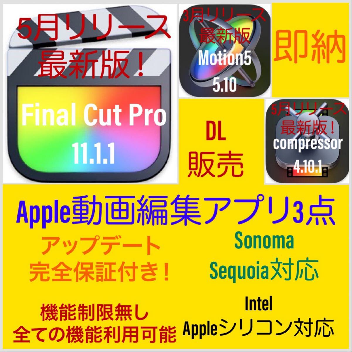 | 商品説明 | ◆動画編集のプロやYouTuberが使用しているプロ仕様の動画編集アプリ! ★①Final Cut Pro 11.1.1 [5/28リリースの最新版] ②Motion 5 5.10 [3/28リリースの最新版] ③Compressor 4.10.1 [5/28リリースの最新版] ★対応OS [Mac OS 14.6以降 Sonoma,Sequoiaに対応] ★機能制限無し!全ての機能利用可! ★PDF版インストールマニュアル付き! [初心者でも簡単インストール可] ★インストール台数制限無し! ★トライアル版ではありません!永続利用可! ◆アップデート完全保証! [アップデート毎に最新版へ無料でご案内させて頂きます] |