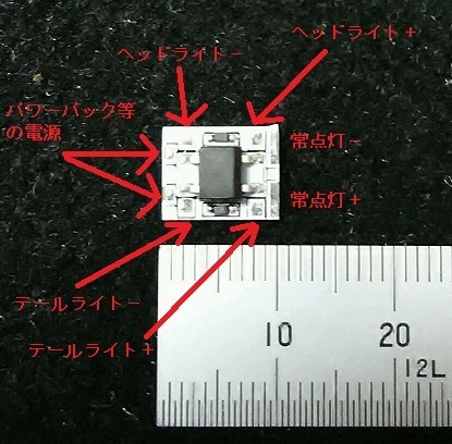 鉄道模型の室内灯やヘッドマークなどの常点灯用と、前進・後進によりON・OFFを切り替えるヘッド・テール回路(ダイオードによる逆流保護付き)の小型基板です。
