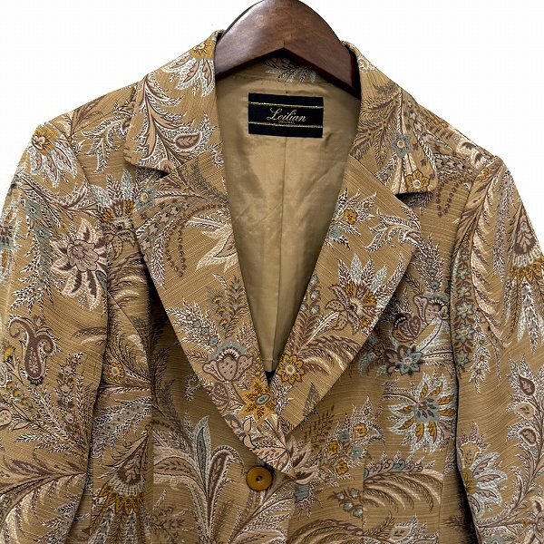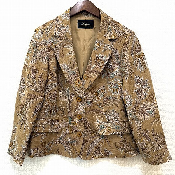 #anc レリアン Leilian ジャケット 17+ カーキ系 茶 水色 ボタニカル柄 シルク混 大きいサイズ レディース [935404]
