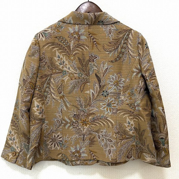 ●商品名(タイトル):#anc レリアン Leilian ジャケット 17+ カーキ系 茶 水色 ボタニカル柄 シルク混 大きいサイズ レディース [935404]