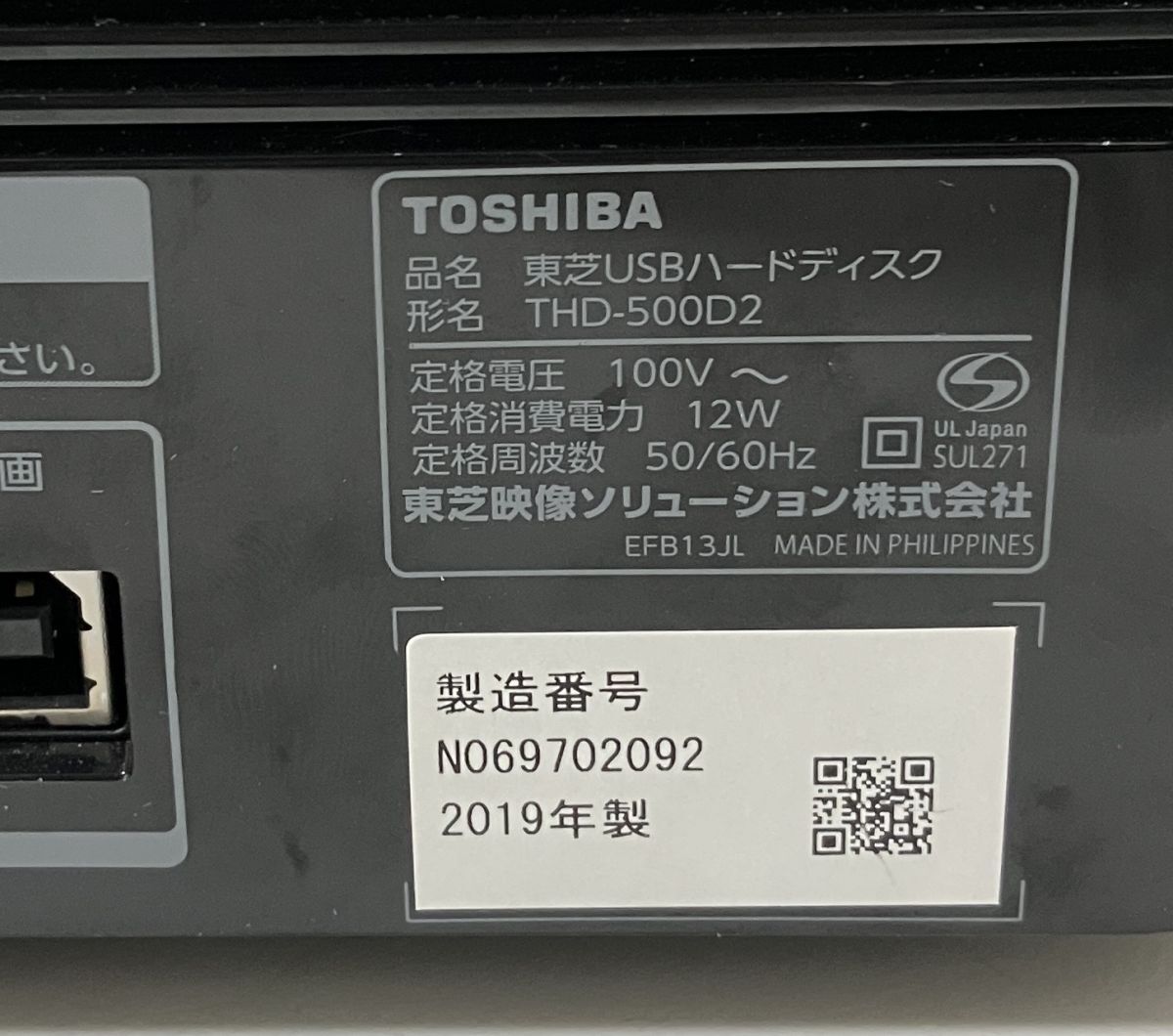 TOSHIBA 東芝 REGZA レグザ 純正 USB外付けハードディスク 5TB HDD THD-500D2 タイムシフトマシン対応