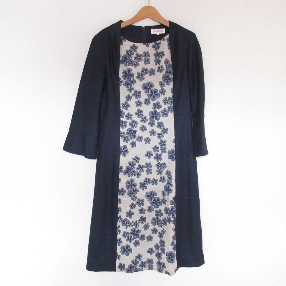良品 YUKITORII ユキトリイ フラワーウールワンピース ネイビー