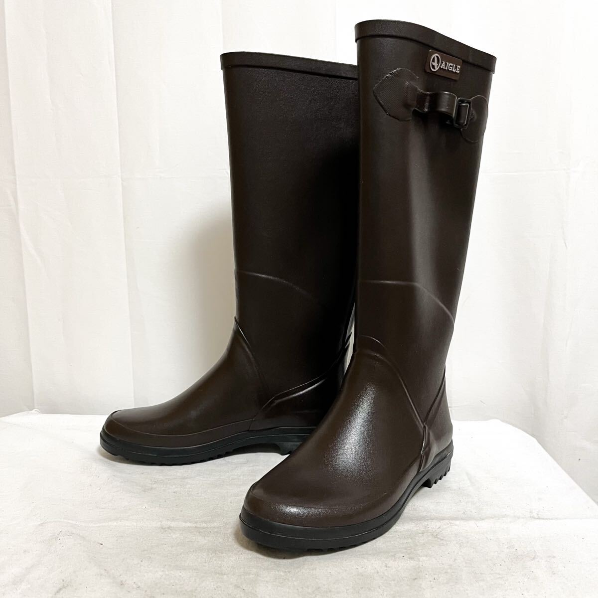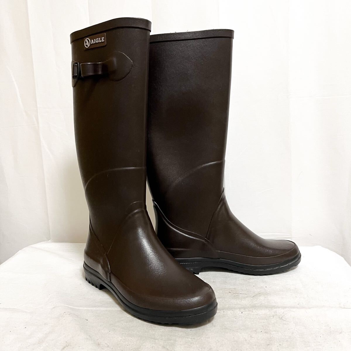 和835★ AIGLE エーグル レインブーツ 長靴 雨靴 ロングブーツ シューズ アウトドア フランス製 35 ブラウン レディース