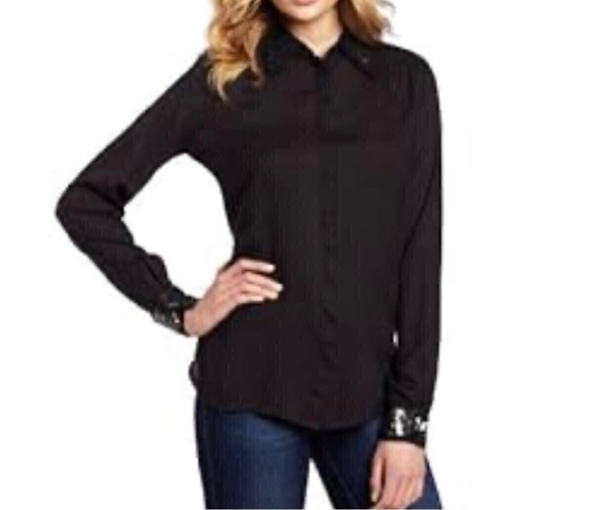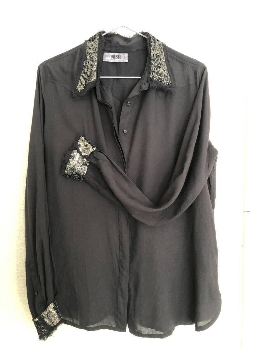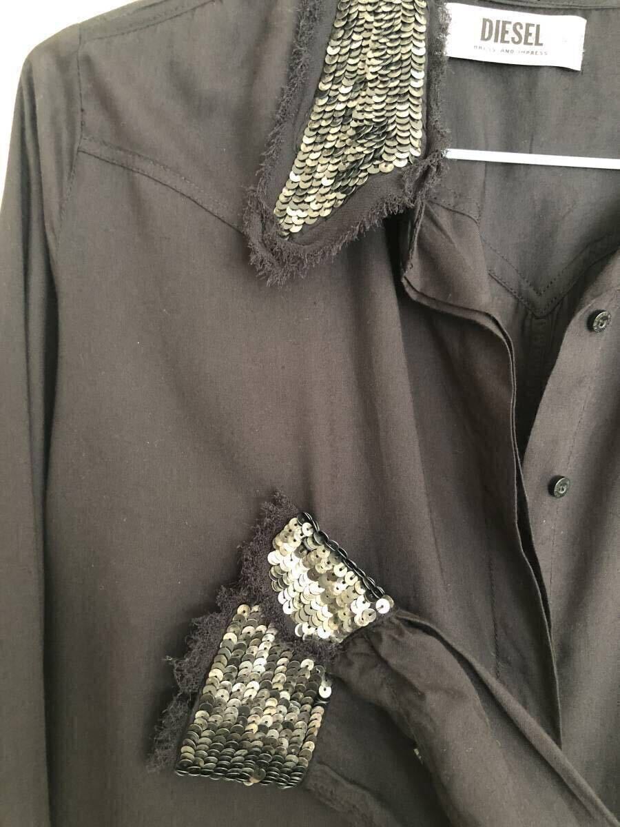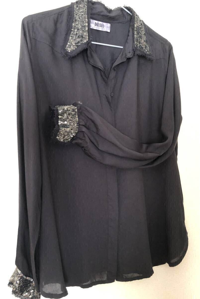 2回着用【DIESEL】スパンコール付ブラウス(ブラック)  ディーゼル シャツ レディース 黒