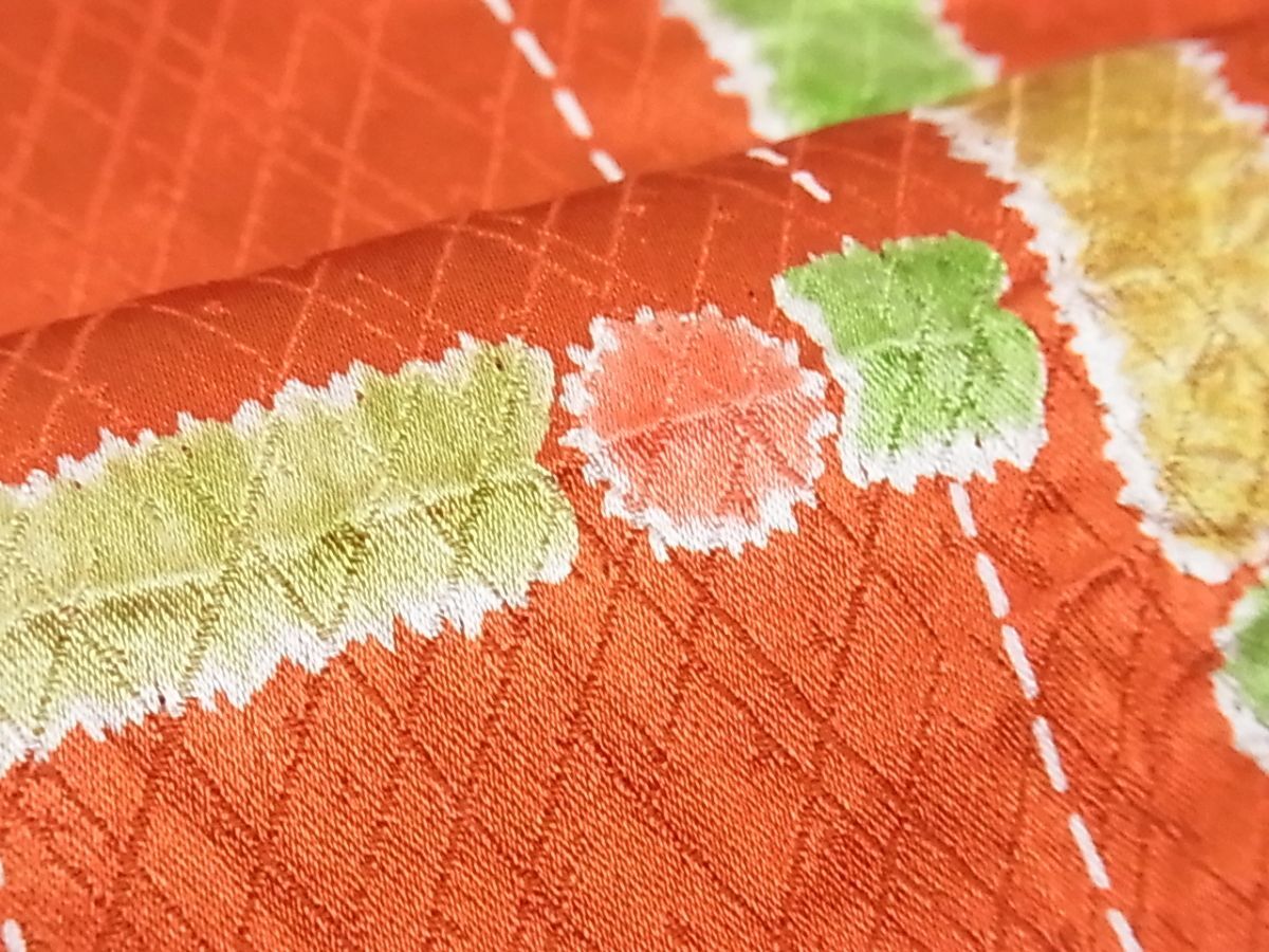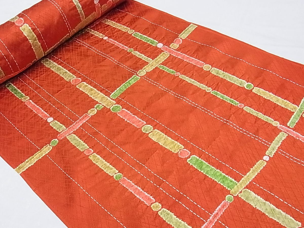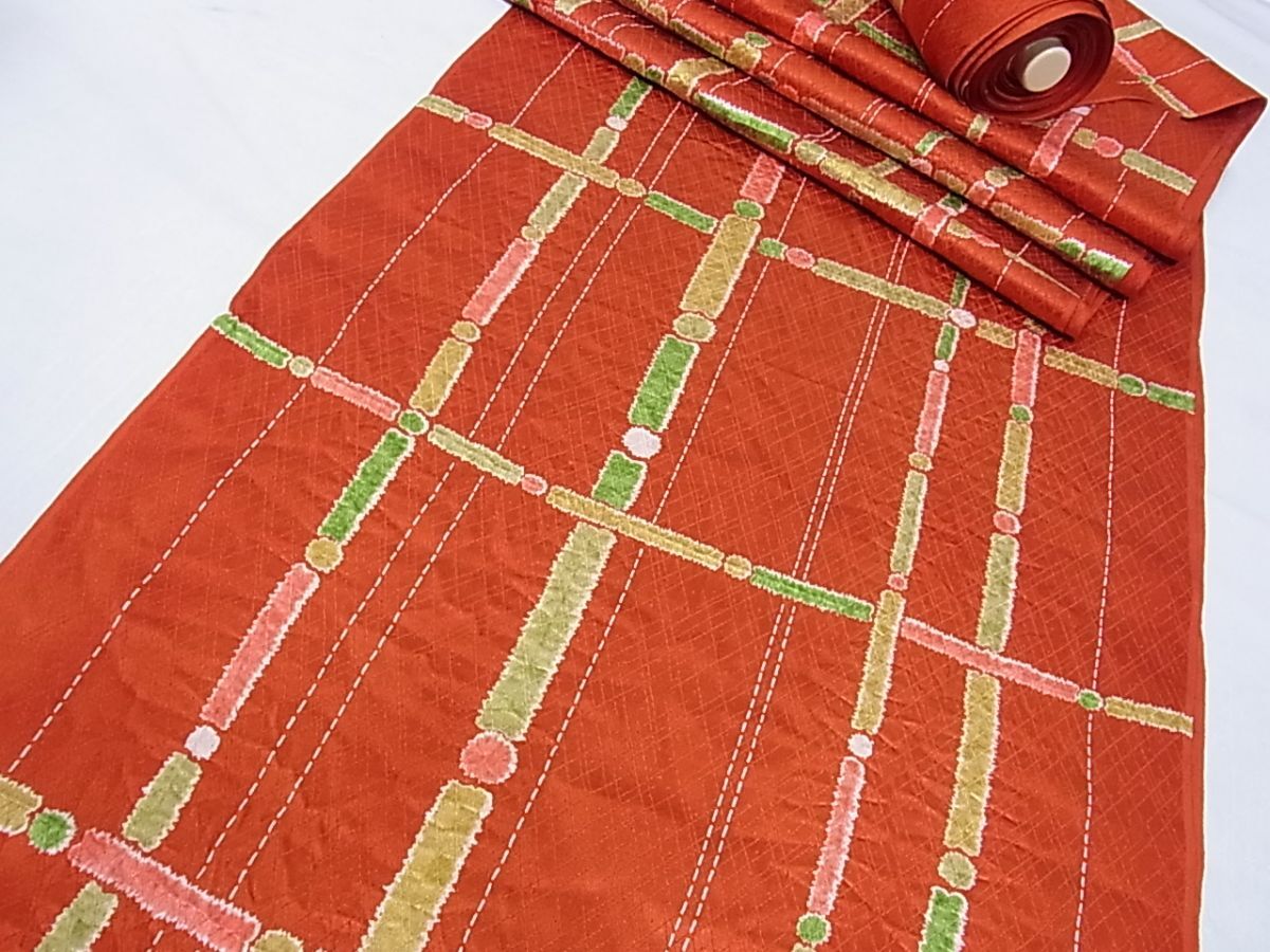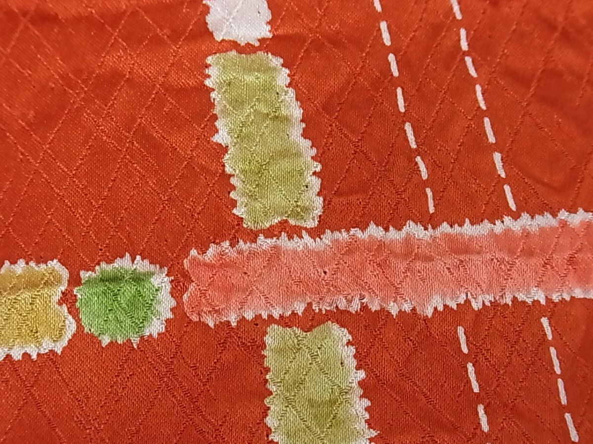 eふれんず◆小紋 反物 着尺 絞り 格子 丹後縮緬 正絹 美品 未使用品 未仕立て◆bm1642