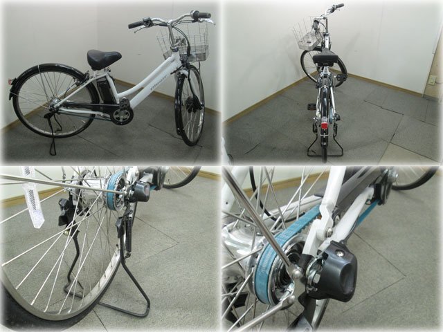 ブリヂストン 26インチ電動アシスト自転車 アルベルトe B200 L型 AEL626 を出品いたします。 ■特徴■ 学生を知りつくした 通学自転車アルベルトから 電動アシスト通学自転車、 アルベルトe誕生。 フロントモータードライブ 前輪に組み込まれたモーターが、 電気の力をダイレクトに伝達、 力強い走りを実現しました。 カーボンソリッドドライブ 高剛性のベルトが後輪に力をダイレクトに伝えるため、 自転車ならではの踏みごこちをお楽しみいただけます。 デュアルドライブ 前輪にモーター。後輪にベルトドライブ。 両輪駆動のデュアルドライブで 力強くスムースな走りを実現しました。 また、すべてのギヤで24km/hまでアシスト。 ギヤに合わせて力を発揮するので、 疲れた時や、きつい坂もより楽に走れます。 スリップ制御 マンホールやアスファルトのつなぎ目、 小石や砂が集まりやすい車道脇など、 路面の急な変化によって、 前輪が空転を感じた瞬間アシストを抑え、 スリップを回避します。 Think Box(パワーコントロールデバイス) 上る時にはパワフルに駆動する前輪モーター。 下る時にはアシストブレーキをかけ、 そのエネルギーを充電にまわします。 手がかじかむような寒い日にも、 レバーを強く握り続けることなくラクに減速できます。 (※満充電時・温度管理機能作動時には働きません) シンプルパワーパネル 走行状況に応じてモード切り替え。 距離重視の「エコ」、賢く走る「オート」、 ずっと力強い「パワー」 リチウムイオンバッテリーB200 36Vバッテリー採用で、 バッテリーへの負担を軽減。 耐久性に優れ、充電時間も短いので、 毎日長く、繰り返しお使いいただけます。 ワイヤー内蔵アルミフレーム ワイヤー内蔵で外観スッキリ。 軽量で丈夫なアルミフレームを採用。 ワイドスーパーパワーバッテリーランプ 超高輝度LEDを搭載。前方はもちろん、 足元まで広範囲を照らす最新型ランプ。 サイドLEDもついて、横からの視認性も抜群です。 ■仕様■