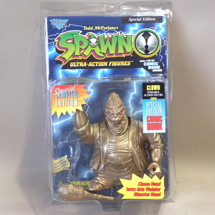 1990年代当時物、マクファーレントイズ スポーン「クラウン モンスターヘッド ゴールド」未開封品です。