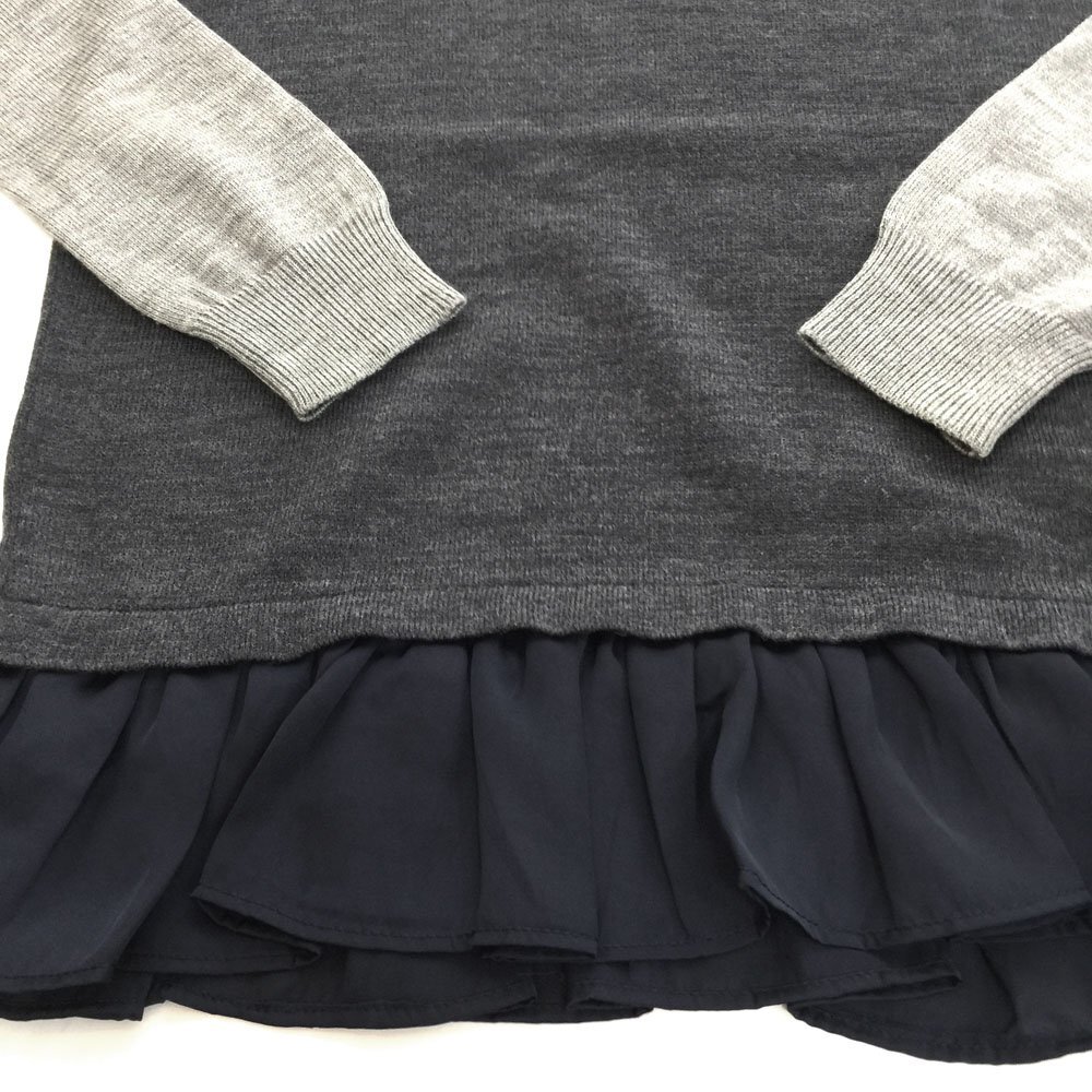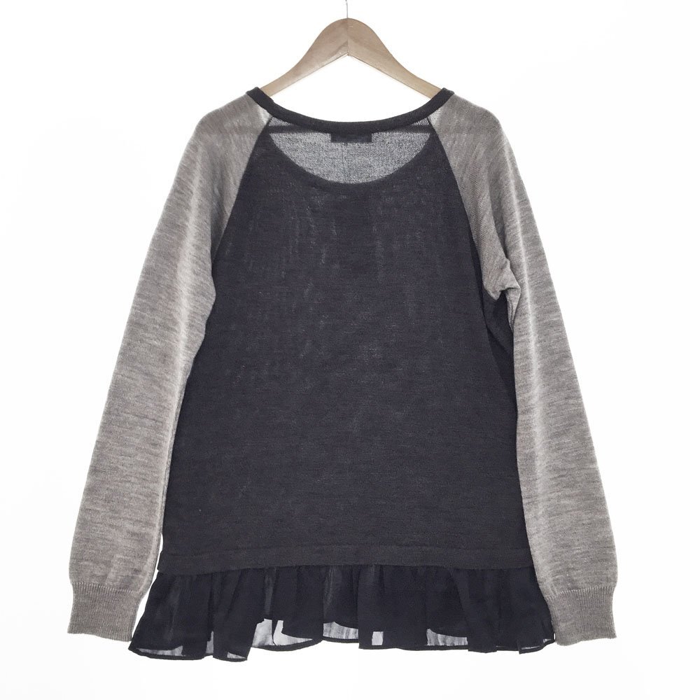 コメント | 長袖のニットプルオーバー。裾のサテンフリルがドレッシーな印象。ゆったりとしたシルエットなのでどなたでも着こなしていただけます。 身頃はウール、裾のフリルはポリエステルとなります。品質表示タグに素材の記載がございませんのでご注意ください。 未使用のお品です。目に付く傷や汚れは見当たりません。キレイです。ご理解のある方のご購入をお待ちしております。 |