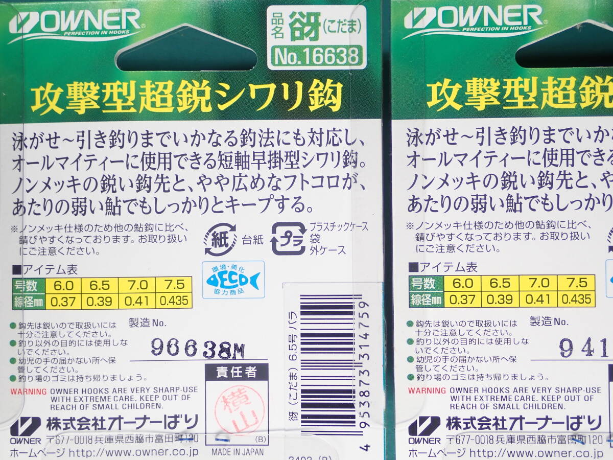 オーナー社 谺 (こだま) 6.5号 7.5号 新品 2個セットでの出品です。発送は無料で、定形郵便にて発送致します。現状は画像から判断していただき、ノークレームでお願いします。