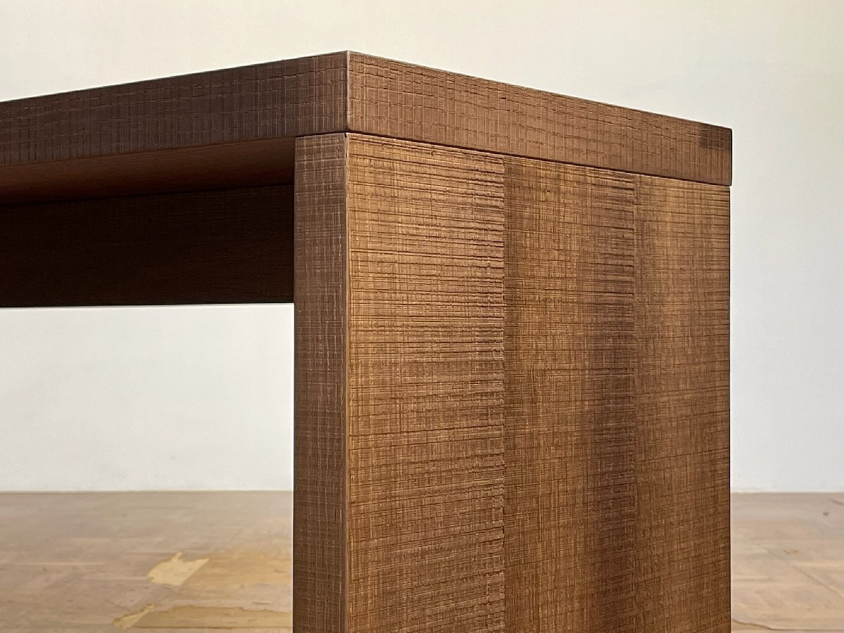 B&Bイタリアだからこそセレクトすることのできる最高品質オーク部材を使用しつつも、イタリアらしいデコレーションの解釈で素材感を謳い上げるマクサルトやフレックスフォルムで培った審美眼から、丹念な打ち込みの技法で凹凸感を表現することで、エイジングやパティナともまた違った独特な表情を生み出している点は、さすがの一言に尽きます。