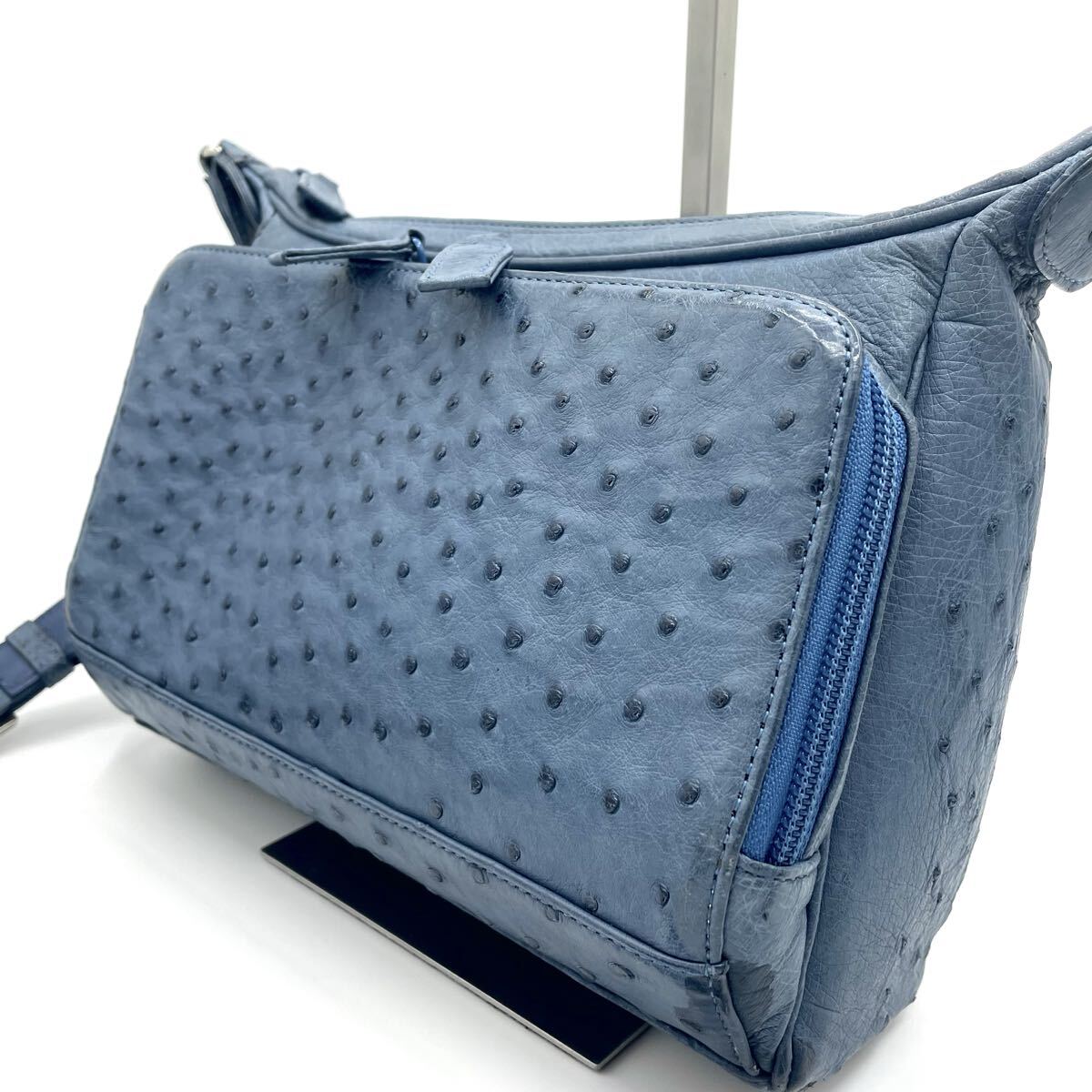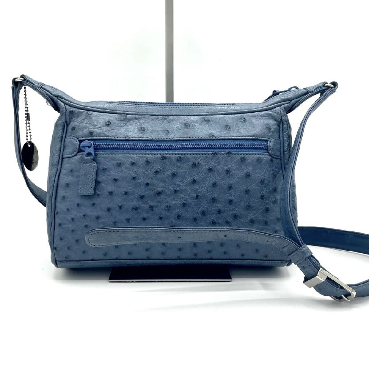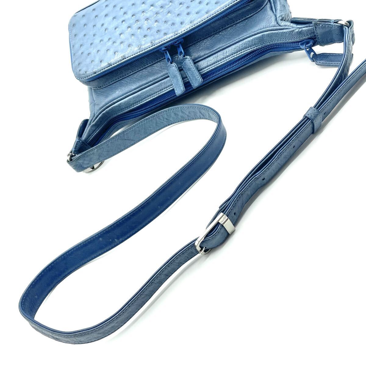 【JRA 高級】 オーストリッチ ショルダーバッグ ブルー 青 肩掛け 斜め掛け エキゾチックレザー ダチョウ革 駝鳥 レディース 2559