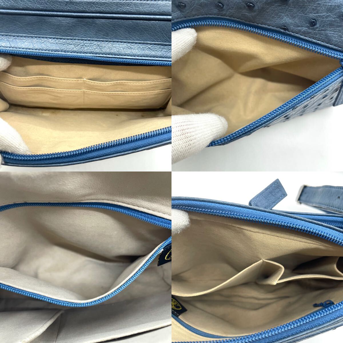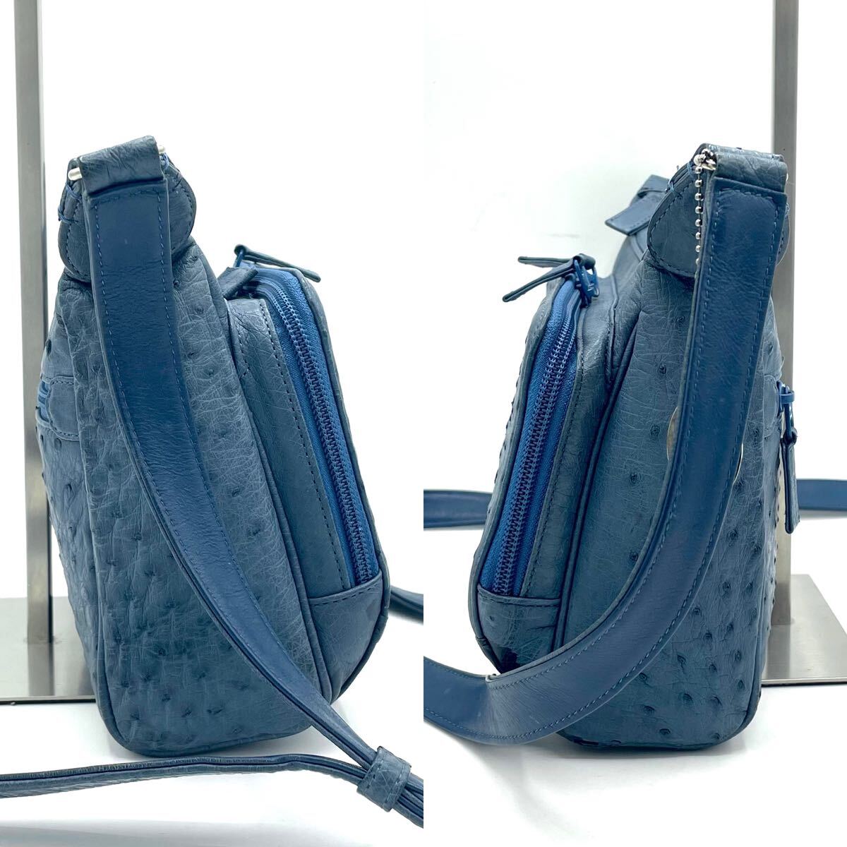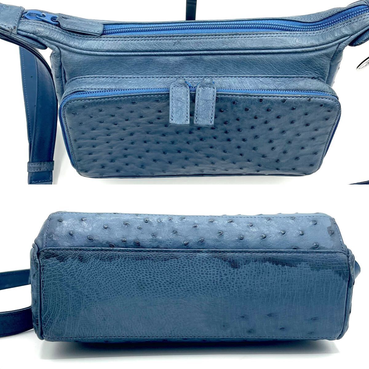 【JRA 高級】 オーストリッチ ショルダーバッグ ブルー 青 肩掛け 斜め掛け エキゾチックレザー ダチョウ革 駝鳥 レディース 2559
