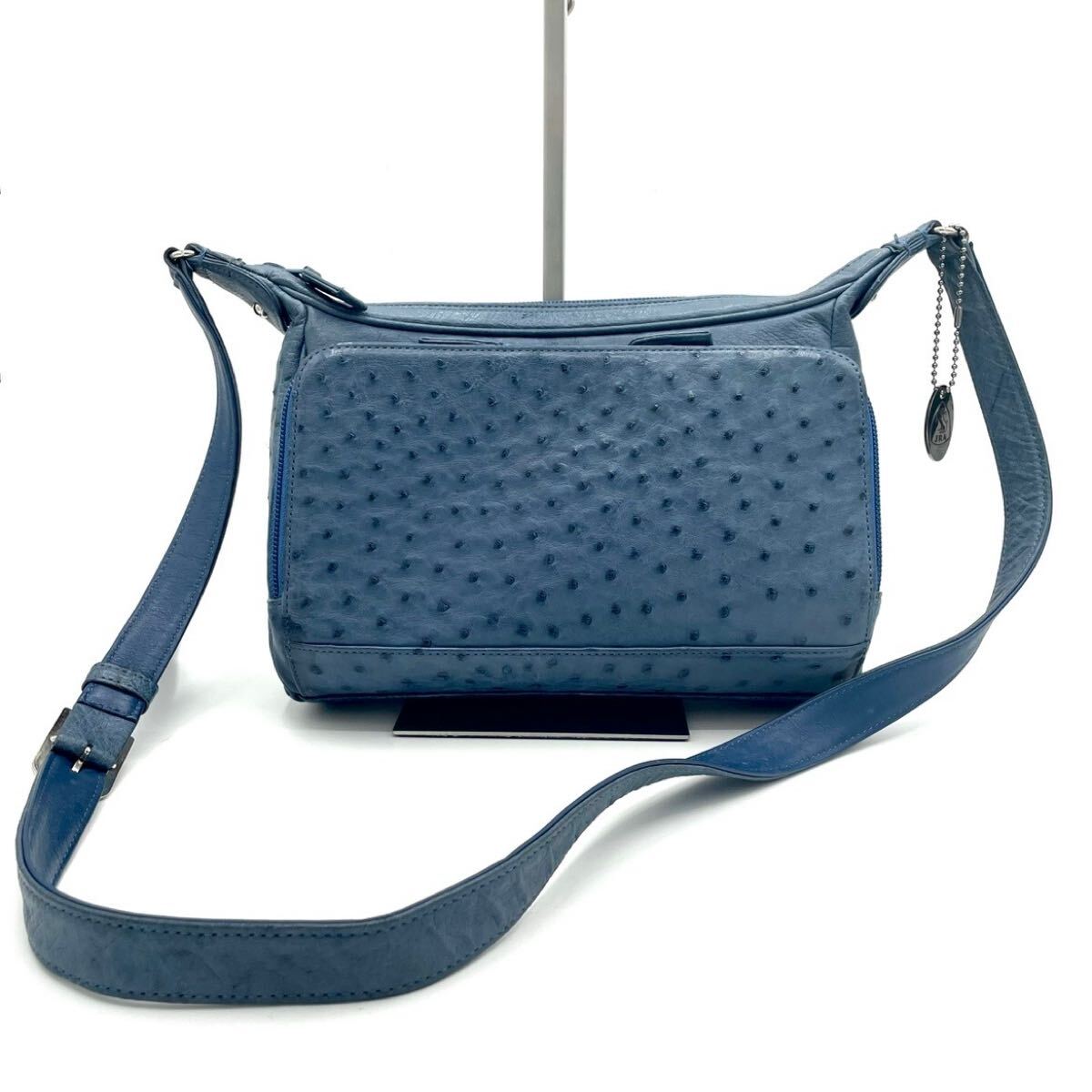 JRA オーストリッチ ショルダーバッグ ブルー 青 肩掛け 斜め掛け エキゾチックレザー ダチョウ革 駝鳥 レディース