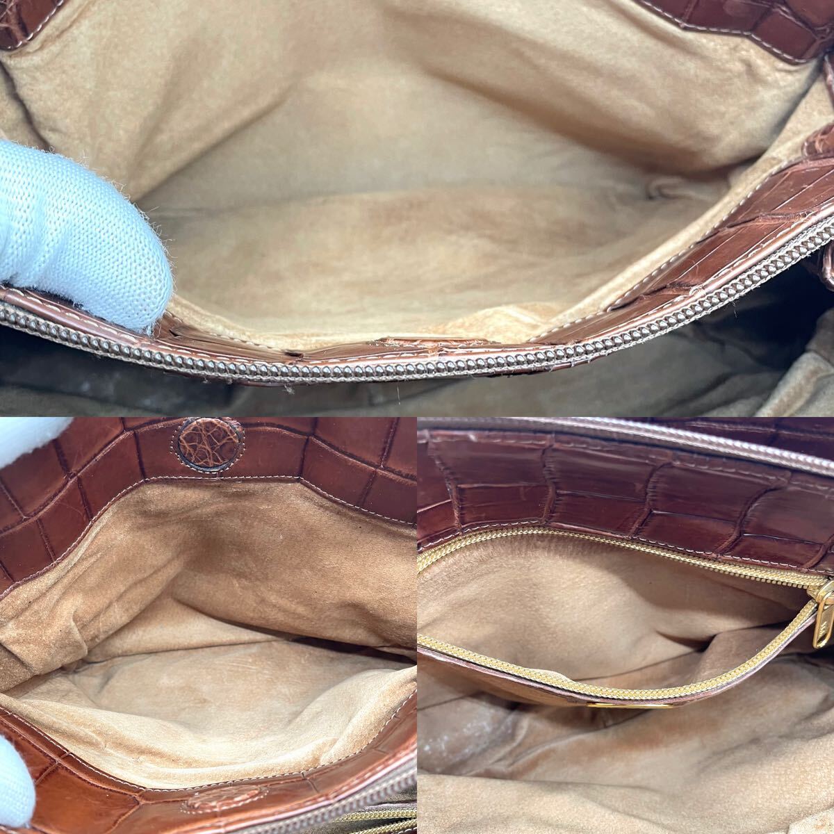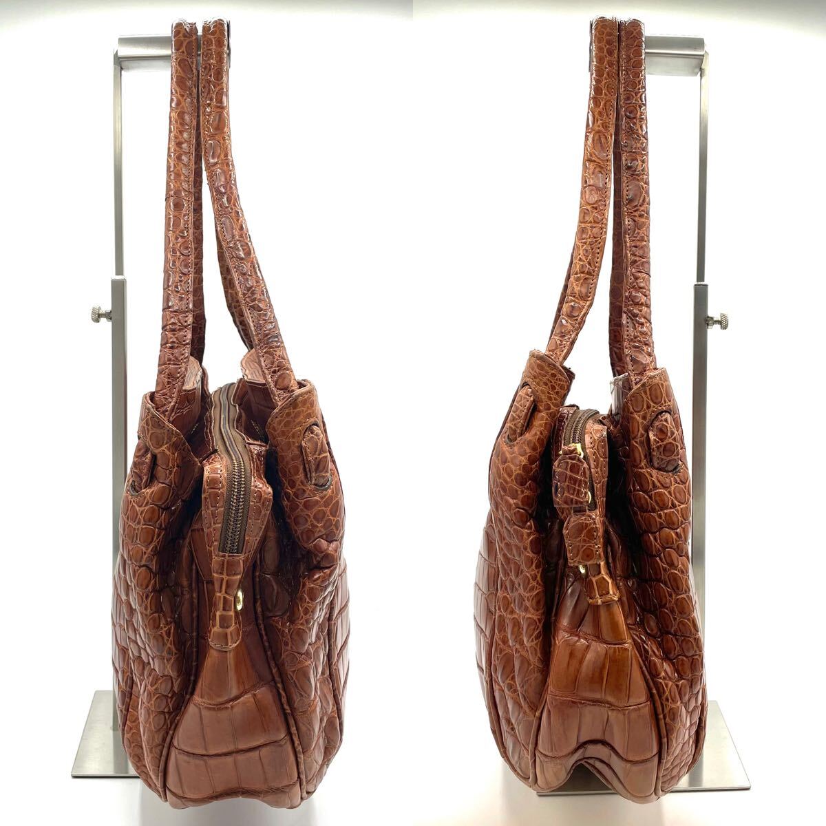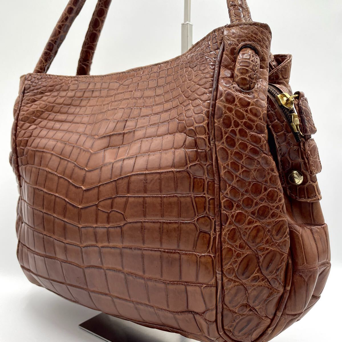 【美品 高級】クロコダイル トートバッグ MONICA 肩掛け マット クロコ エキゾチックレザー ワニ革 鰐革 ブラウン 茶 レディース 2587