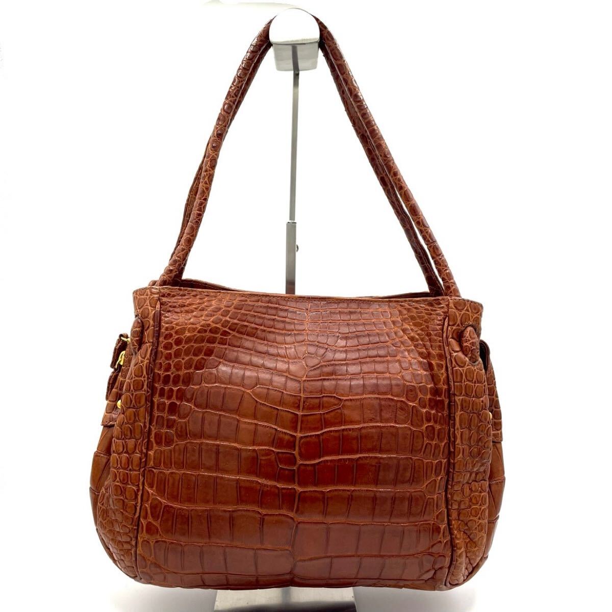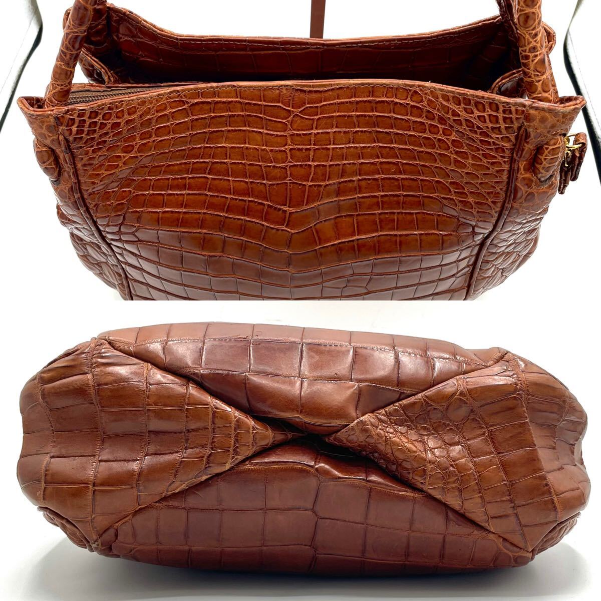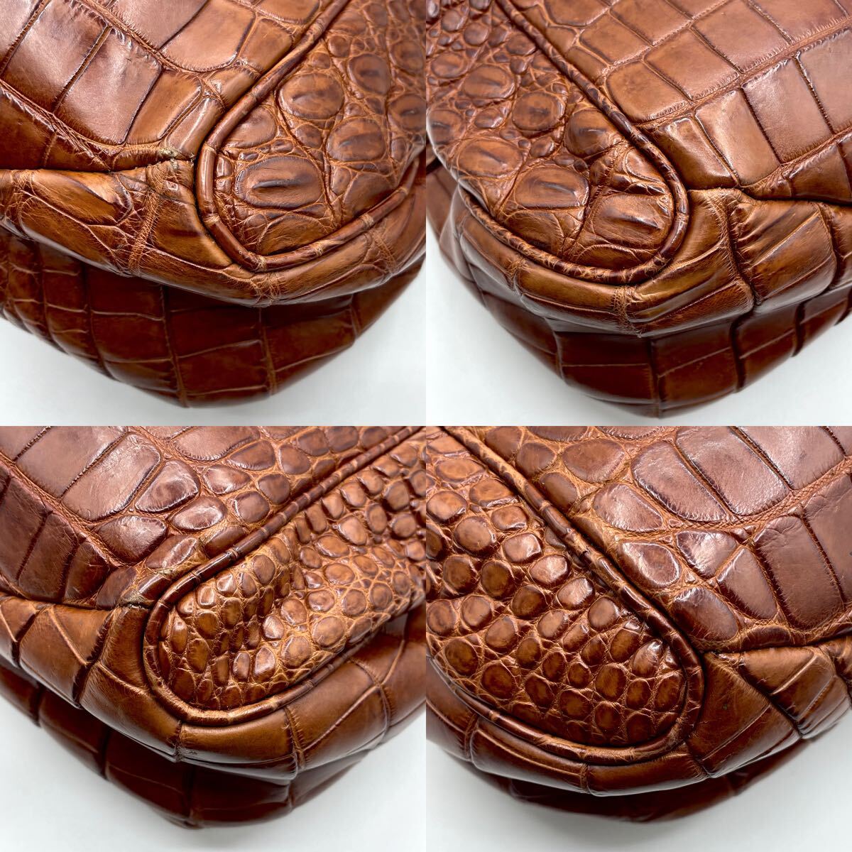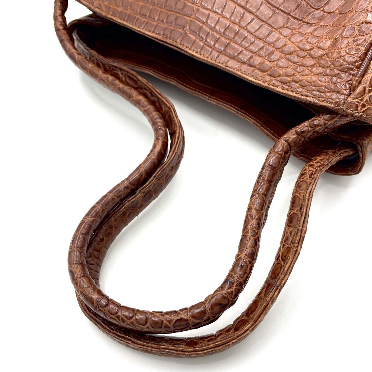 【美品 高級】クロコダイル トートバッグ MONICA 肩掛け マット クロコ エキゾチックレザー ワニ革 鰐革 ブラウン 茶 レディース 2587