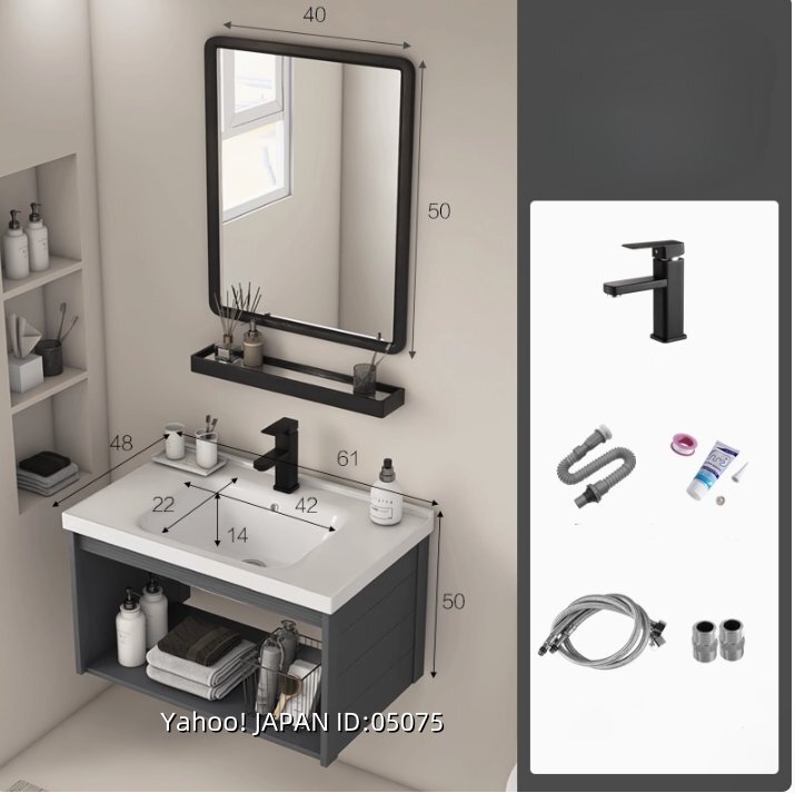 洗面台の組み合わせ バルコニー壁掛け式の洗面盆 陶器一体化の洗浄台盆 トイレ鏡つき