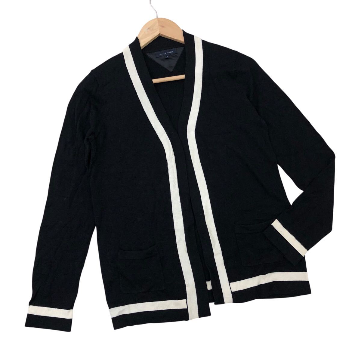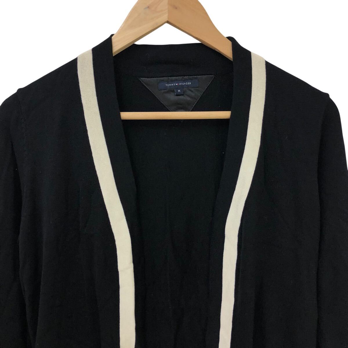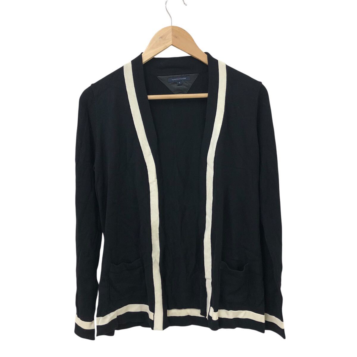 9Nm323-8 TOMMY HILFIGER トミーヒルフィガー シルク 絹 コットン混 バイカラー 長袖 ニット カーディガン 羽織り トップス ブラック M