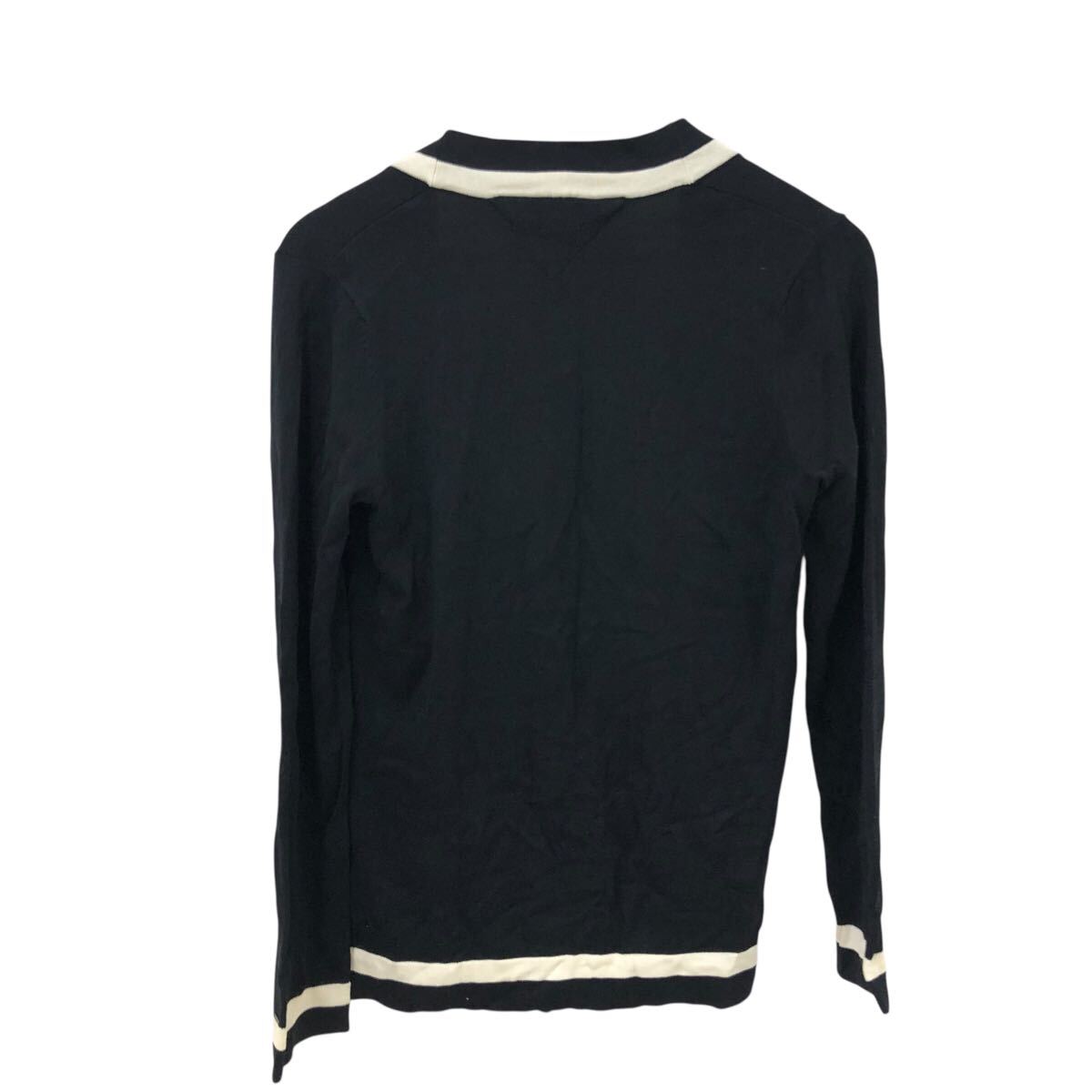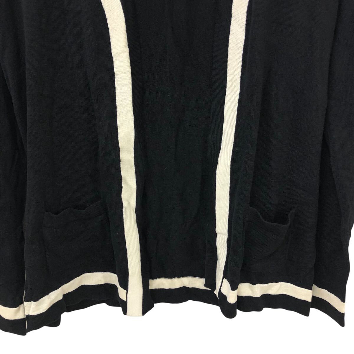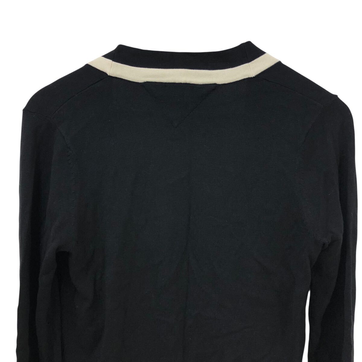 9Nm323-8 TOMMY HILFIGER トミーヒルフィガー シルク 絹 コットン混 バイカラー 長袖 ニット カーディガン 羽織り トップス ブラック M