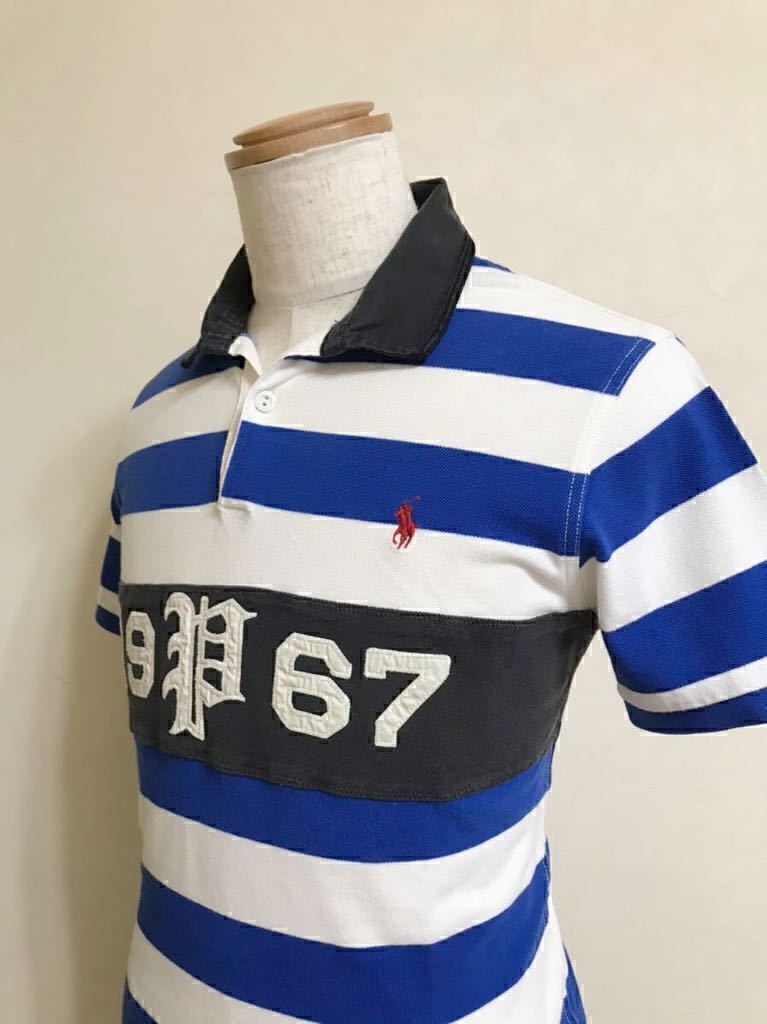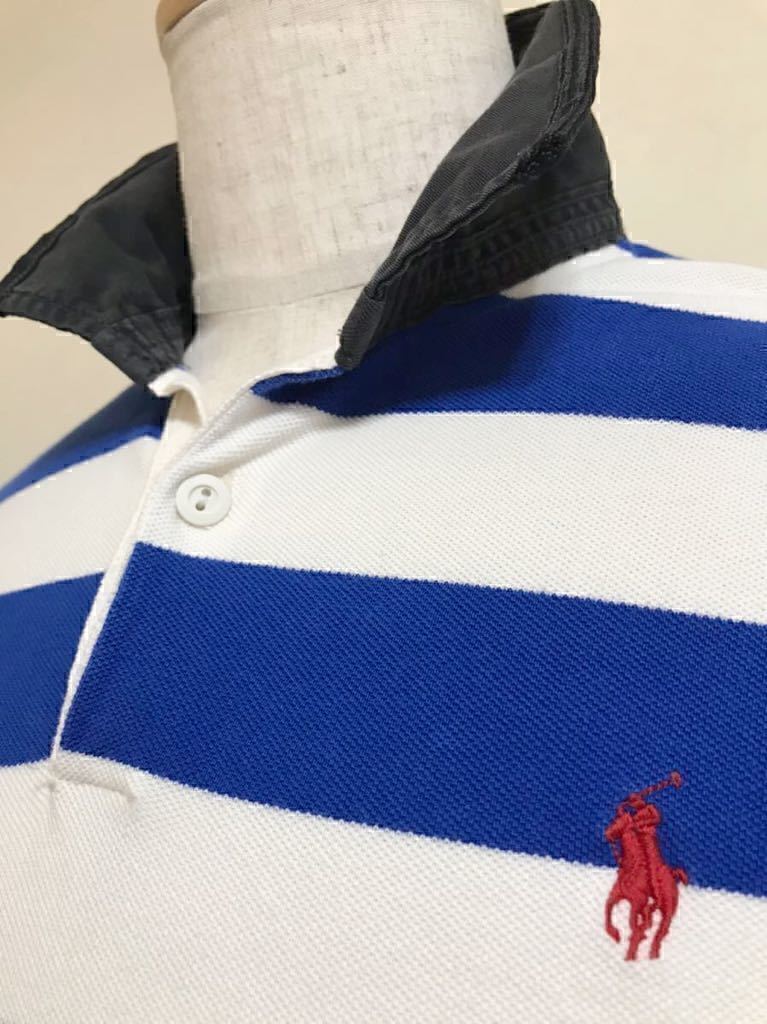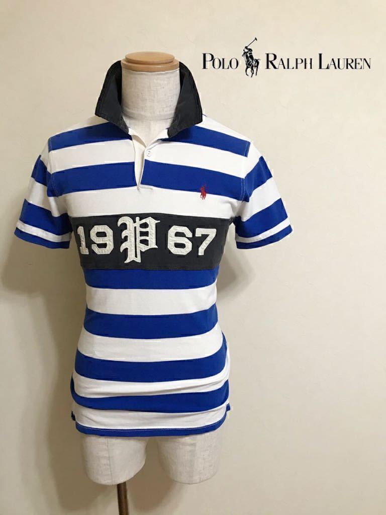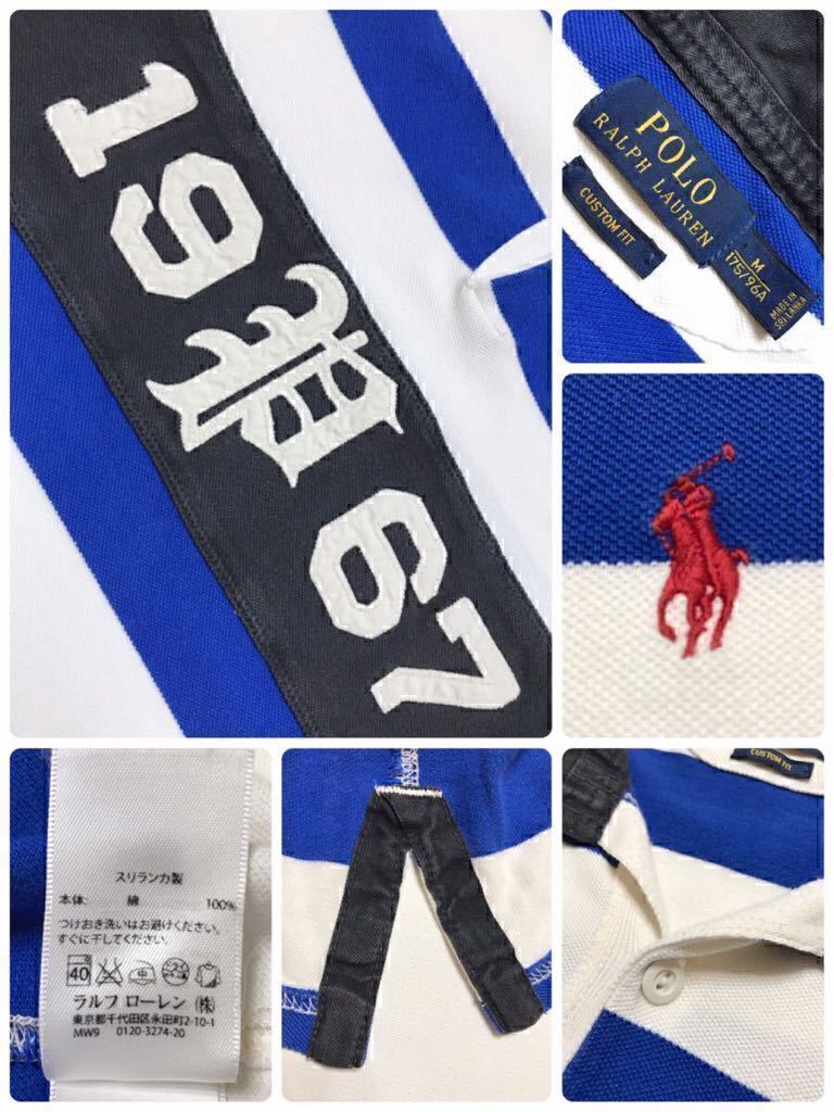 Polo Ralph Lauren ポロラルフローレン カスタムフィット ボーダー 鹿の子 ラガーシャツ ポロシャツ トップス サイズM 175/96A 半袖 青白黒