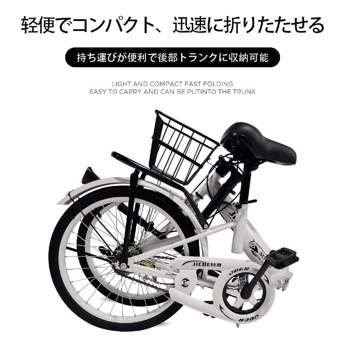 【おすすめ】 軽量 防滑タイヤ リアキャリア付き 小径車 JIEBEIER 20インチ 高炭素鋼フレーム 自転車 折りたたみ自転