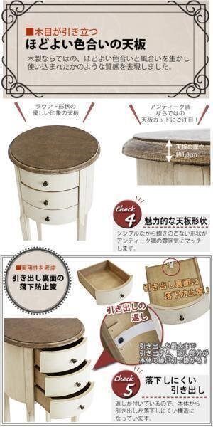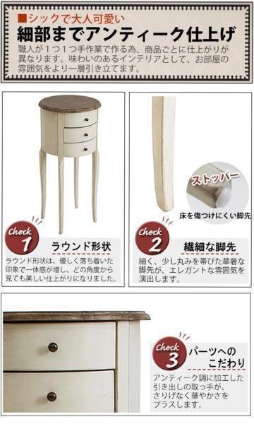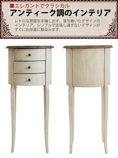 商品名 | アンティーク調 ラウンドチェスト W約40×D約40×H約87cm ホワイト 花台 ラウンド 3段 三段 引出し 引き出し アンティーク家具 木製 チェスト アンティーク風 アンティーク インテリア 家具 リビング収納 シャビーシック シャビー 白 antiqueh37wh |