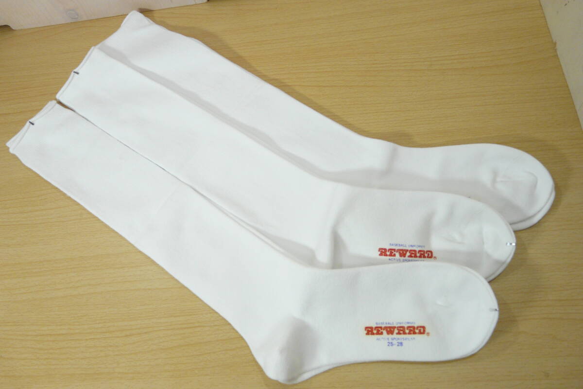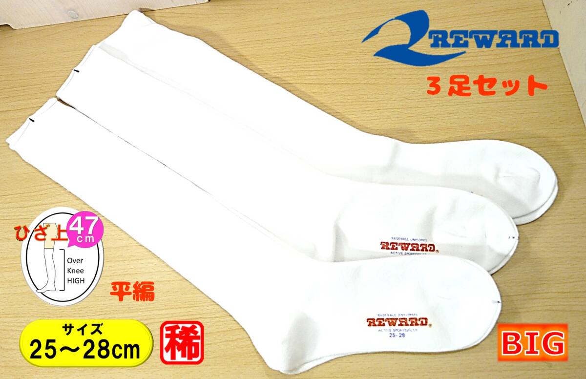 【未使用品★レッグウェア】REWARD◆白 ハイソックス◆アンダーソックス 3足セット◆厚手◆25-28cm◆47cm丈◆よく伸びる◆稀少◆