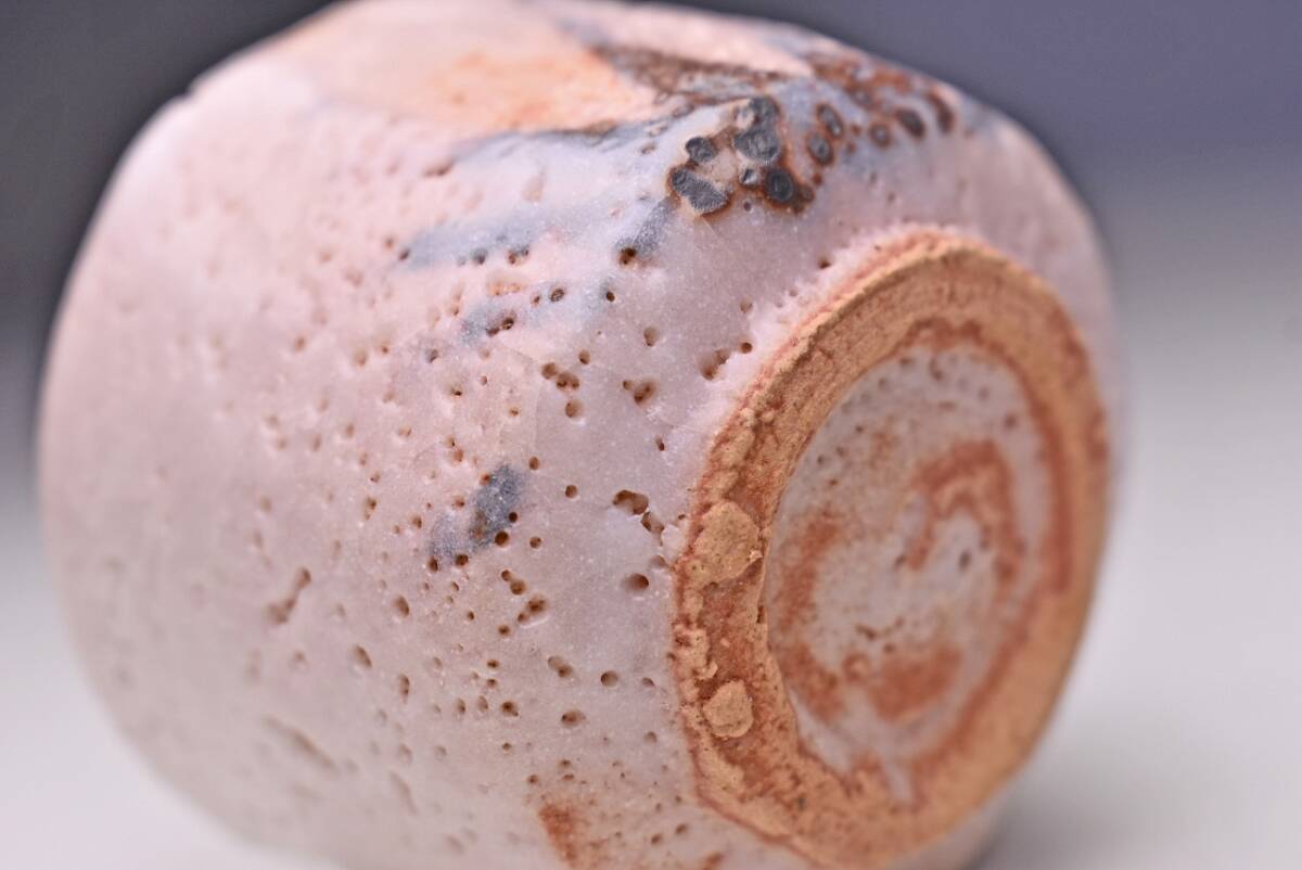 加藤孝造 ★ 志野 ぐい呑 ★ 共箱 ★ 人間国宝 ★ 上作 ★ 師: 荒川豊蔵 ★ オレンジの緋色美しく毎日愉しみたい贅沢な逸品 ★ 酒器 杯 盃