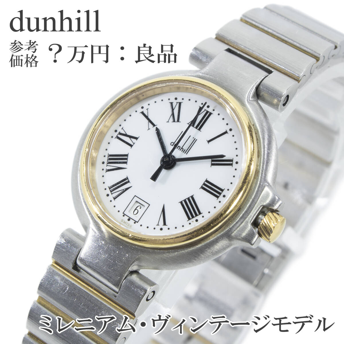 送料無料 ダンヒル 腕時計 レディース ミレニアム 白 シルバー ゴールド ヴィンテージ コンビカラー ロゴ シンプル ブランド スイス製 X332