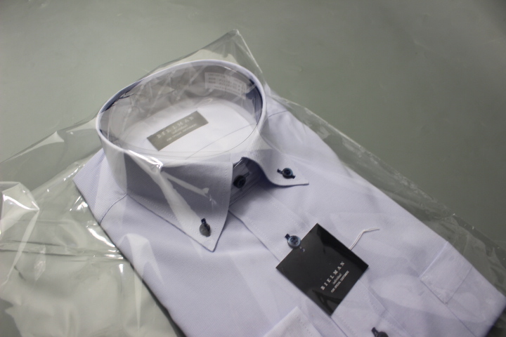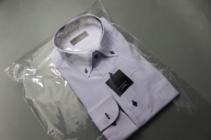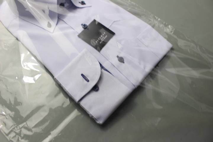一度開封して、襟の型崩れ防止の透明フィルムを外して少したたみ直して発送します。