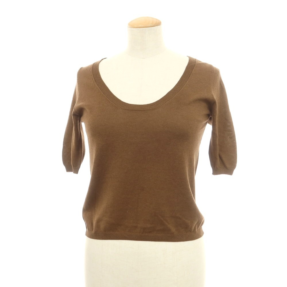 【新品アウトレット】スカリオーネ SCAGLIONE ハイゲージ ルクウール Uネック 半袖 プルオーバーニット ブラウン【 S位 】